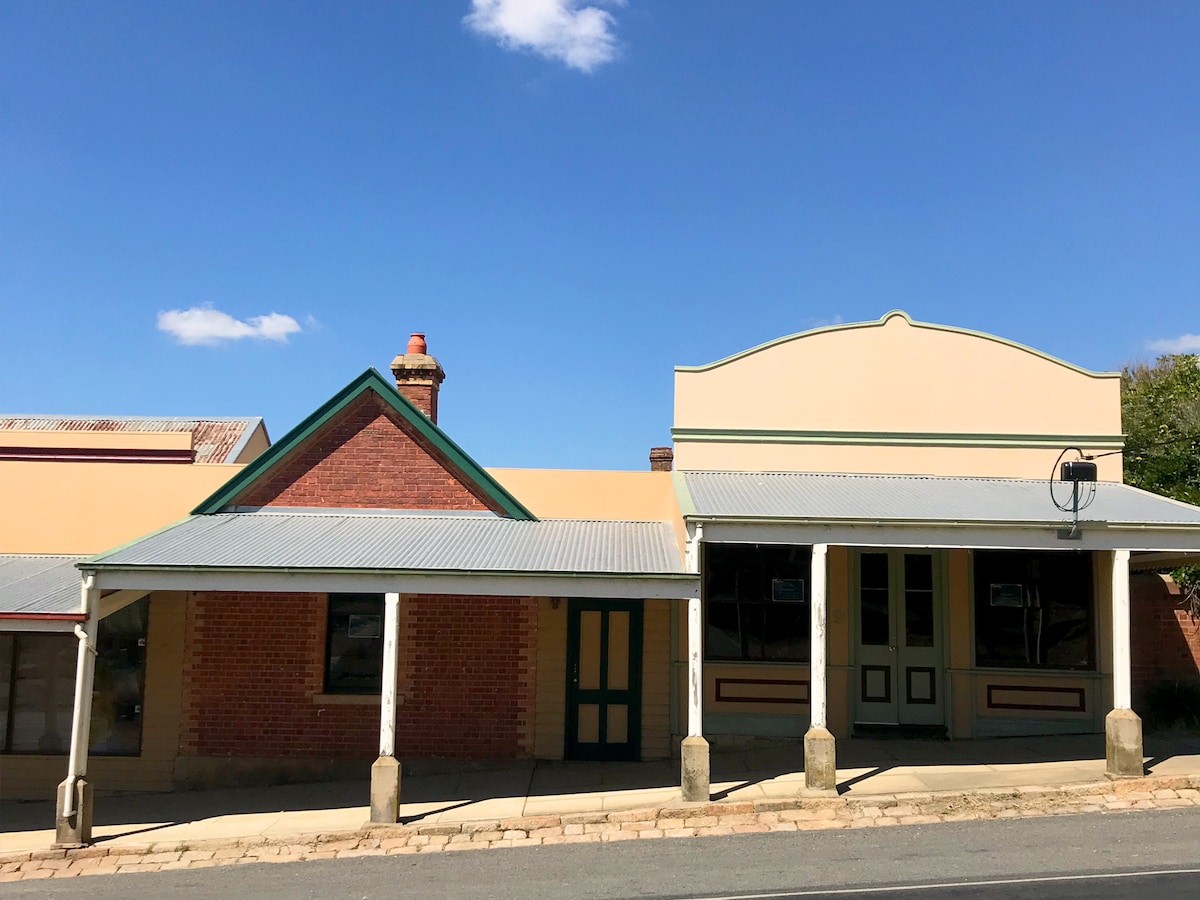 Comfortable 3 room plus bathroom corrugated cabin/cottage in quiet garden setting rear of principle house. Equipped kitchenette and Wifi. NE Victoria has mountains, rivers,vineyards, prolific horticultural region. Close to other tourist towns for day trips. Rich in Gold rush history, sensitively preserving the historic nature of the town. Hotels,brewery, berry farms, hikes, bike trails, elegant dining, boutiques, home wares stores, honey store all within a 10min up hill walk to town.