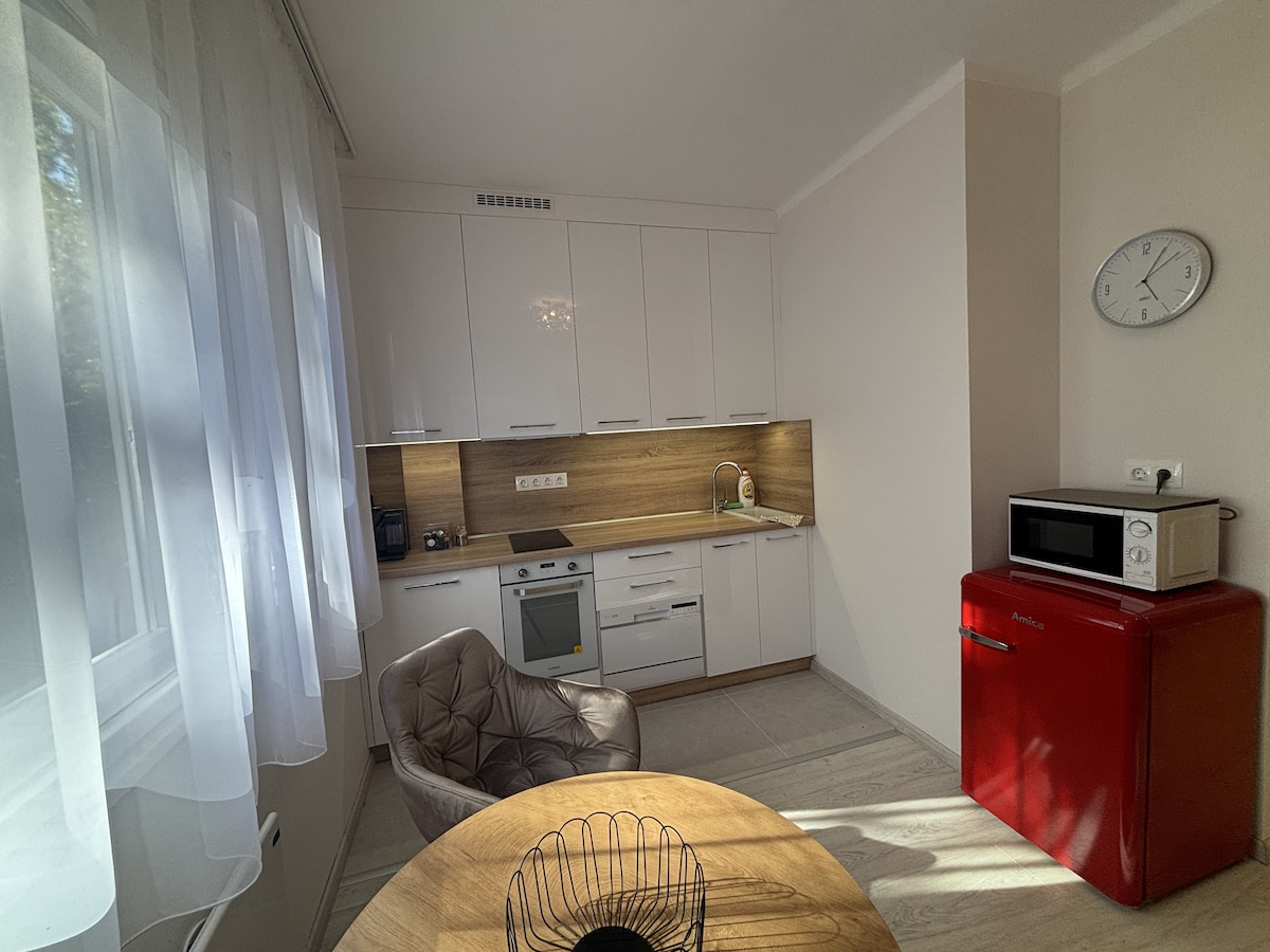 Просторные апартаменты в тихом месте в трёх километрах от исторического центра города и в двух километрах от озера с потрясающими видами и рыбалкой. Апартаменты для гостей с отдельным входом и бесплатной парковкой внутри двора Вся группа до 6 человек с комфортом разместится в этом просторном жилье. Для моих гостей есть отдельные спальни, ванная комната, кухня, беседка, тихий большой зелёный двор, бассейн с зоной барбекю. По сезону вкуснейший инжир и персики.