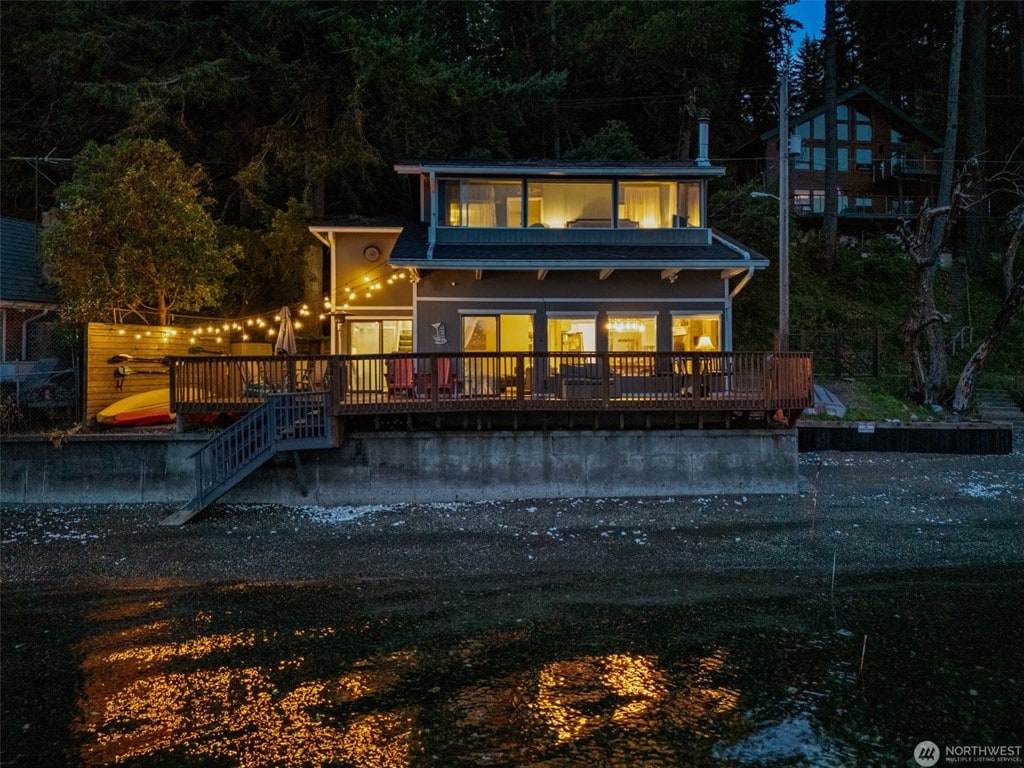 Deze vakantiewoning ligt aan de ongerepte oevers van het Hood Canal en biedt een ongeëvenaarde ervaring van het kustleven. Als je de accommodatie betreedt, word je begroet door een uitnodigend en stijlvol ingericht interieur, ontworpen om zowel comfort als een gevoel van charme aan de kust te bieden. Grote ramen door het hele huis bieden een panoramisch uitzicht op het glinsterende water en de Olympische bergen, zodat je kunt genieten van de natuurlijke schoonheid van de omgeving vanuit elke hoek.