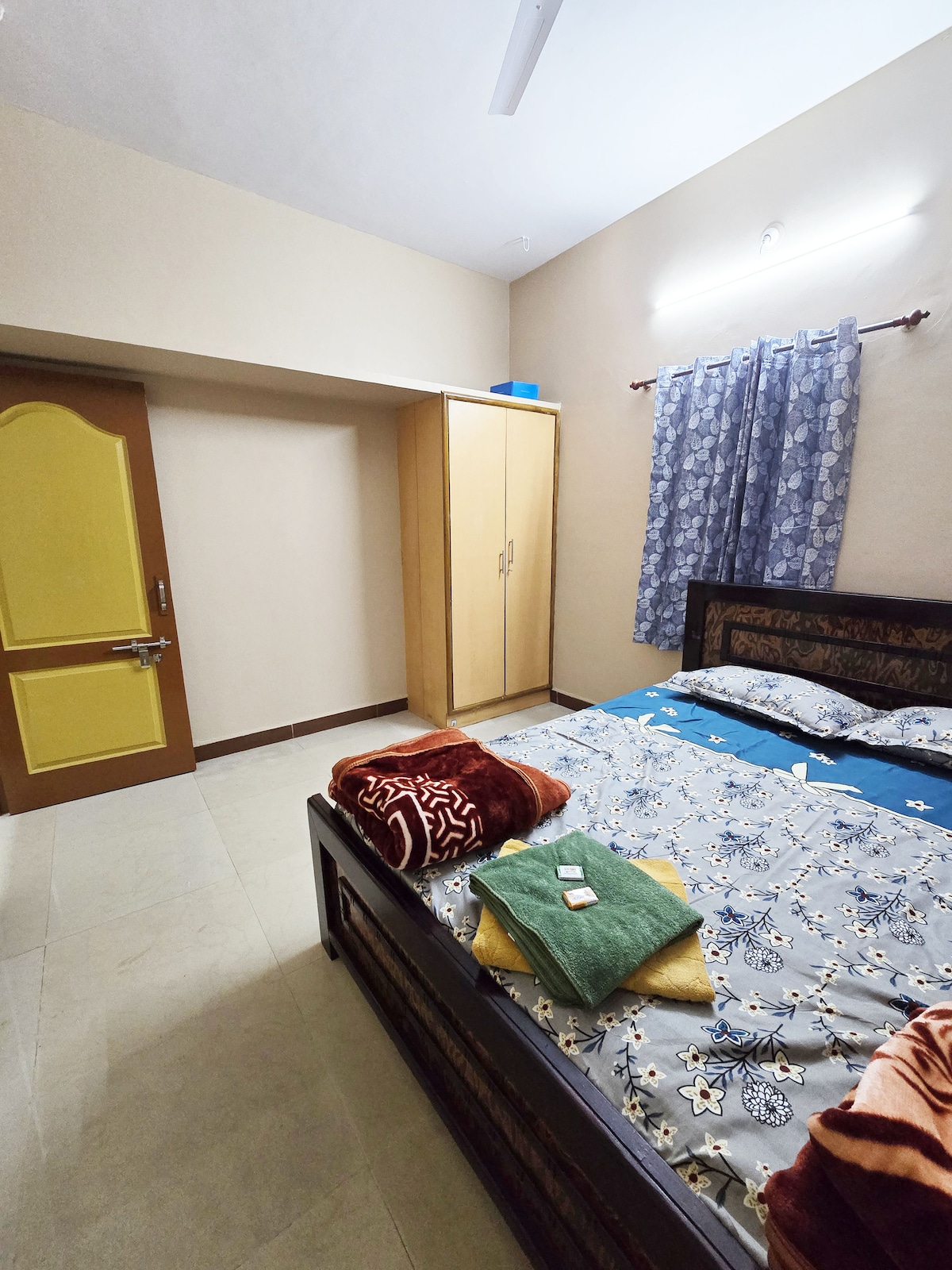 Deze gezellige 2BHK homestay in Hospet is je perfecte toevluchtsoord. Het is gunstig gelegen in de buurt van het treinstation, de bushalte en de belangrijkste bezienswaardigheden zoals Hampi en Tungabhadra Dam. De homestay bevindt zich op de 1e verdieping en biedt twee goed ingerichte slaapkamers, een ruime woonkamer, keuken, wifi en een terras. In de buurt vind je essentiële winkels, apotheken en lokale eetgelegenheden, evenals het gemak van Zomato-bezorging. Parkeren is mogelijk. De huisregels zorgen voor een rustig verblijf.