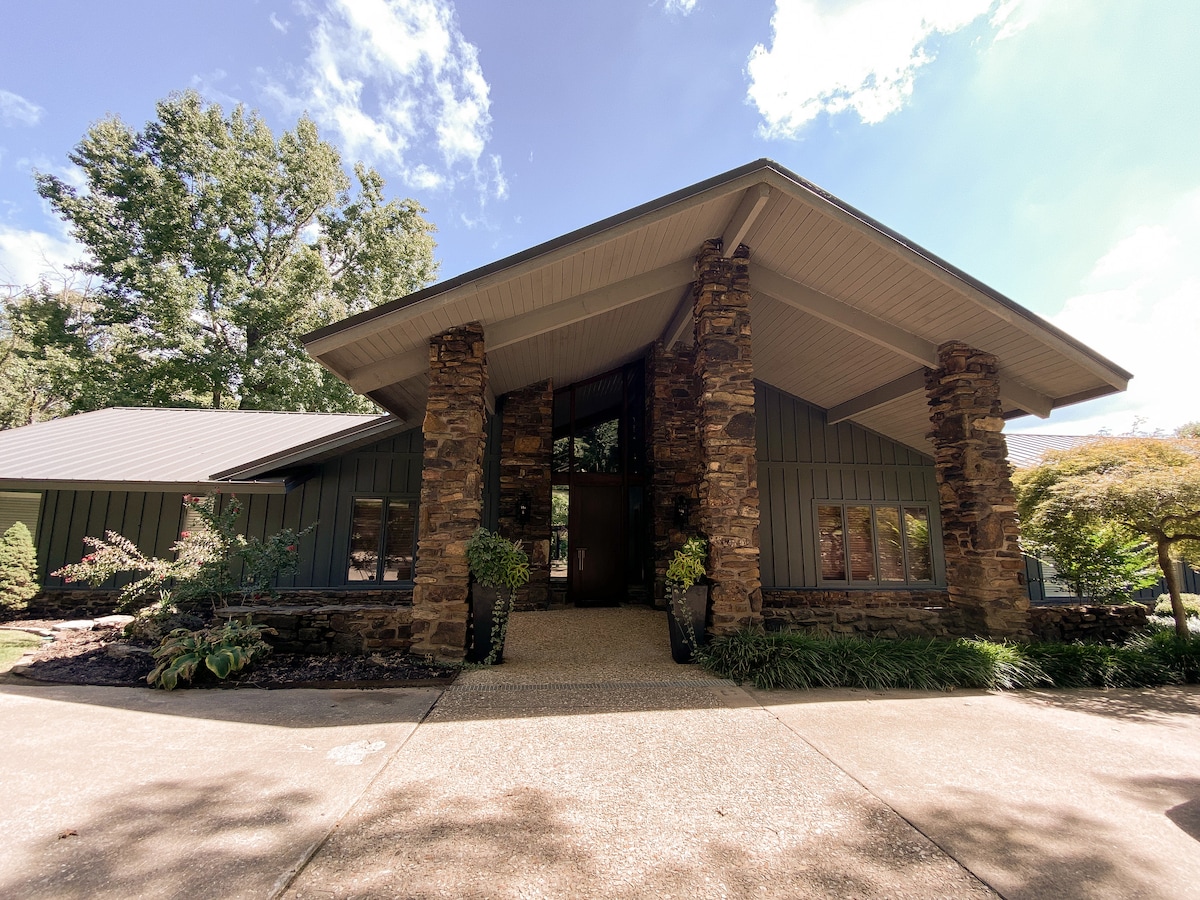 Boek deze retraite AAN HET MEER voor een onvergetelijk uitje!!!!!! Deze woning met 5 slaapkamers en 2,5 badkamers biedt meerdere woonruimtes om gezellig samen te zijn en te ontspannen. *2 woonkamers *Afgeschermde veranda *Terras met gasgrill en eethoek *PRIVÉAANLEGSTEIG aan het Avalonmeer *Kajaks/paddleboards en hangmatten aanwezig *VUURPLAATS *Gameroom *Volledig gevulde keuken * 13 slaapplaatsen *Tv's in elke kamer *Dichtbij fietspaden *De woning is ontworpen voor ontspanning en herverbinding *13 minuten naar Crystal Bridges Museum *Wandel routes in de buurt