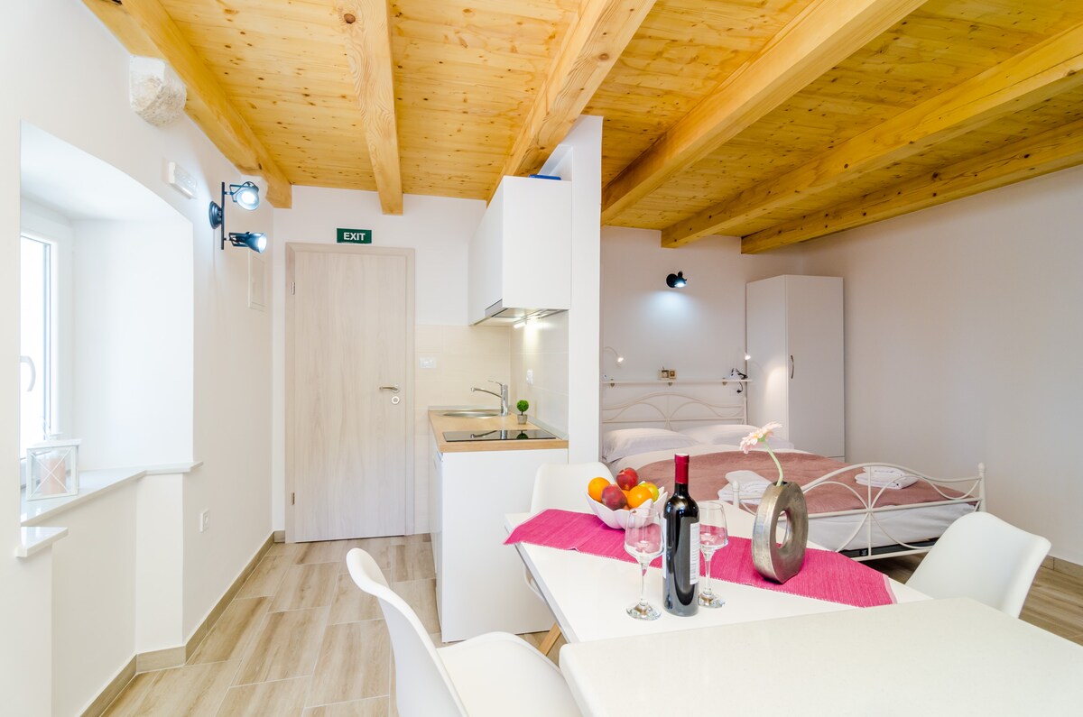 Dit is een modern appartement gelegen in een rustige omgeving. Het heeft een eigen ingang. Buza 2 cocktailbar en zwempunt liggen op 50 m afstand, waar u een drankje kunt drinken en kunt genieten van zonsondergang of kunt zwemmen en rotsduiken. Locatie van het appartement is geweldig. Het duurt 5 minuten om bij Old port te komen, waar je tickiet kunt kopen voor dagtrips naar nabijgelegen eilanden. Het duurt ongeveer 10 minuten te voet naar Banje strand, 5 minuten naar de ingang van de stadsmuren en minder dan 5 minuten naar de supermarkt, musea, kathedraal..