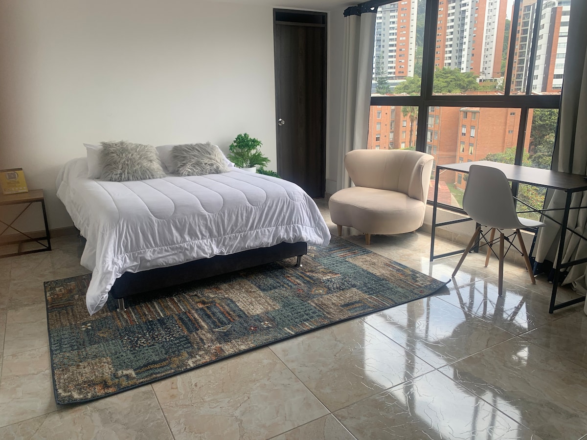 Dit geweldige appartement is gelegen in el Poblado, het is dicht bij en toegankelijk voor alles, zonder in het midden van de dingen. 30 minuten afstand van de luchthaven en op slechts 7 minuten afstand door uber naar Provenza en Parque Lleras waar de beste restaurants en bars zijn gevestigd. Het gebouw waar het zich bevindt heeft onder zijn voorzieningen, zwembad, fitnessruimte, vergaderruimtes, restaurant en roomservice voor ontbijt. (optioneel) Zonder twijfel een van de beste plekken om te verblijven in Medellin ;)