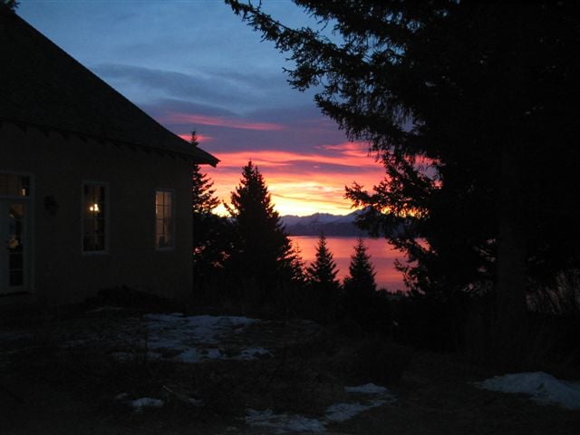This simple, charming cabin sits atop a green (or white or brown) pasture overlooking Kachemak Bay and two spoiled horses. It has a quiet “out of town” feel, yet, the Spit and downtown homer are only an 8-12 minute drive away. You might find fresh eggs from our hens in the refrigerator if they are producing well! It includes one comfy queen bed, full bathroom with laundry, and a small but capable kitchen. Longer stays here are economical and comftorable.