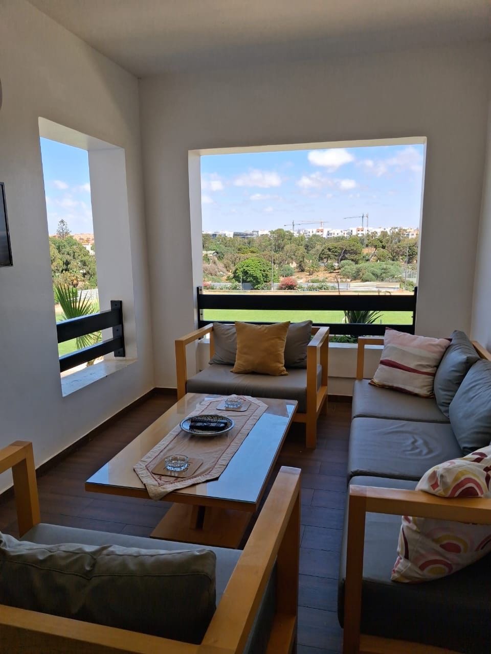 Recent en modern appartement voor vakantiewoning voor familie en getrouwd stel in de Eden Island Oued Cherrat Bouznika residentie omheind en beveiligd, woonkamer + groot terras van 18m² + 2 slaapkamers + 2 badkamers. Appartement op 2 minuten lopen van de zee en de residentie is van zeer hoge standaard en heeft verschillende activiteiten voor volwassenen en kinderen: overdekte zee (4 Ha), groene gebieden, zwembad, directe toegang tot het strand, speeltuin, skateboard tennisbanen, klimmuur, enz.
