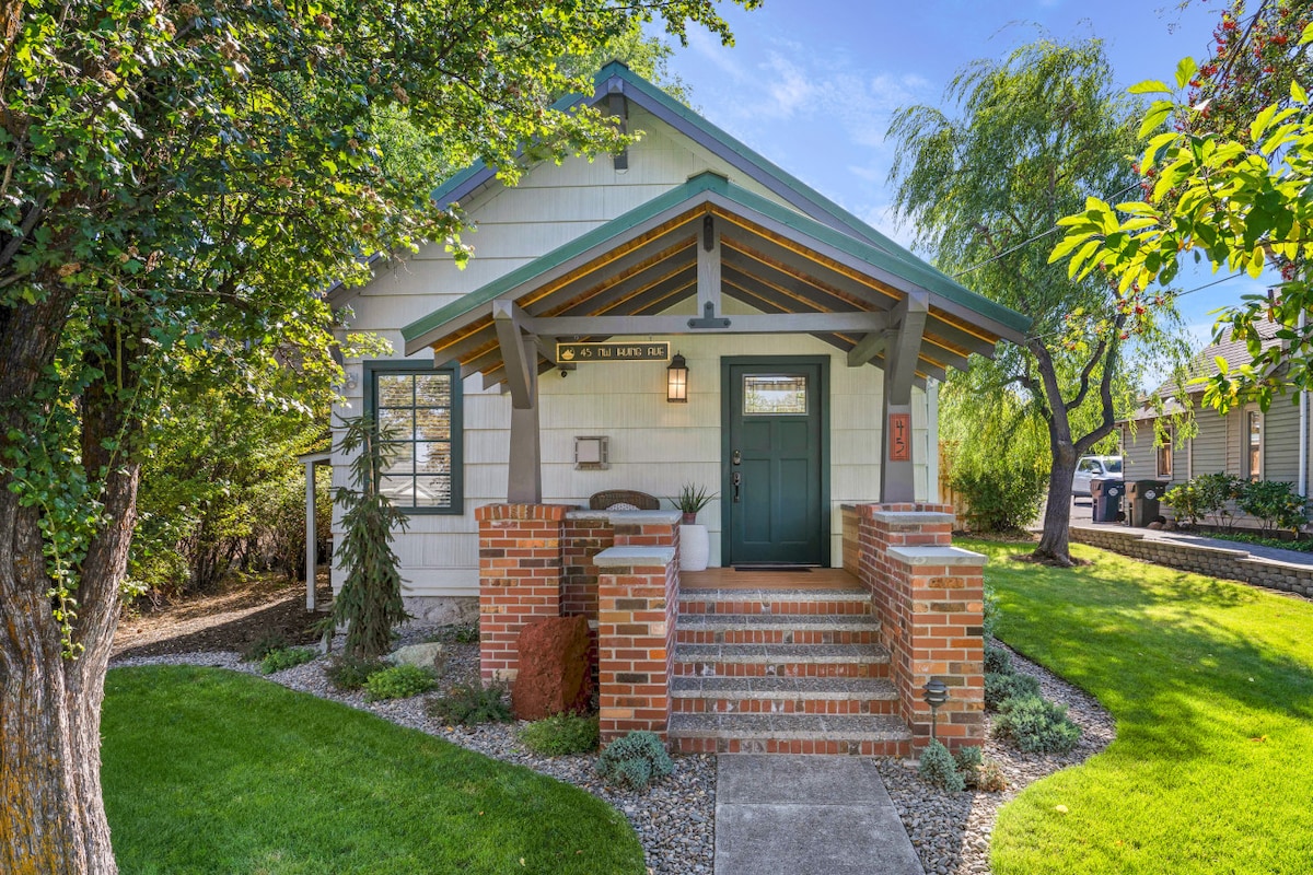 This historic Old Town Bend cottage boasts a relaxing setting for unwinding with a lovely cedar hot tub & sauna in its restored carriage house. Walk to the attractions: 0.2 mi. to the best shops and restaurants, and 0.4 mi. to Mirror Pond & Drake Park! Split heating in each room, snow gear storage, boot warmer, grill, and new washer/dryer. Driveway and extra street parking (free). Fast WiFi and a smart TV. The kitchen is fully stocked, and we look forward to hosting you!