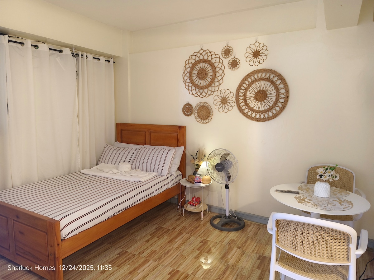 Ingericht en beheerd door JQ PROPERTIES Gezellige, privé en volledig ingerichte studio-eenheid met snelle wifi (10 mbps). Comfortabel queensize bed met Netflix op tv. Laat extra gasten bij je verblijven met het comfortabele extra dubbele matras op de vloer. Deze eenheid is gelegen in een eersteklas en levendige omgeving met lobbytoegang tot een winkelcentrum met Savemore-supermarkt op de benedenverdieping. Aan de overkant van de Universiteit van Baguio (UB), om de hoek van restaurants en winkels op sessieweg, en op loopafstand van Burnham Park en SM.