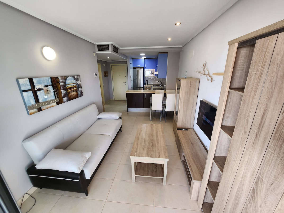 Comfortable 1 bedroom apartment with spectacular views of the Poniente beach in Benidorm. 300Mb/s WiFi. Living room with kitchenette, double bedroom with modern ceiling fan, Marble bathroom and terrace-solarium of 22m². It has air conditioning in the living room. The urbanization has a swimming pool (only open in summer) located at the top of the Tossal de La Cala with a unique panoramic view of all of Benidorm and the Cala de Finestrat beaches. The apartment is 800m away from the beaches.