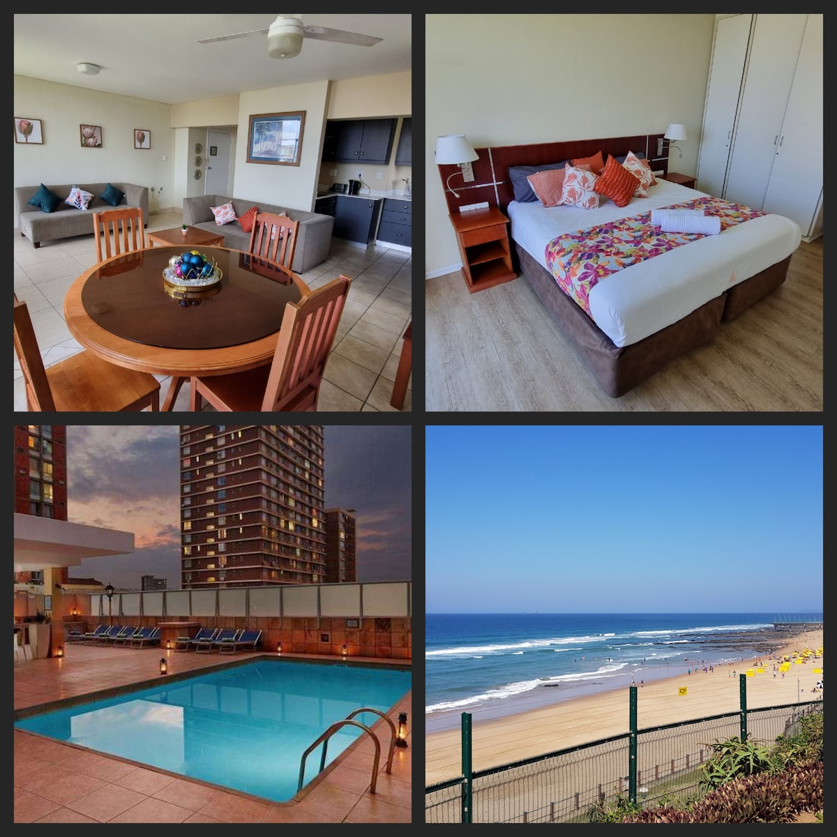 Home away from home comfort in a well furnished and equipped 3 bedroom fully self-catering apartment overlooking life-guarded Bronze Beach. Gorgeous ocean views, A spacious balcony with breath taking views, full DSTV, Netflix, uncapped wifi, aircon in the open plan living area and ceiling fans in all rooms. Pool towels, bathroom and kitchen amenities are provided. Easy beach access gate and a beautiful big pool in the complex. Secure parking on-site and an undercover parking. 24 hour security.