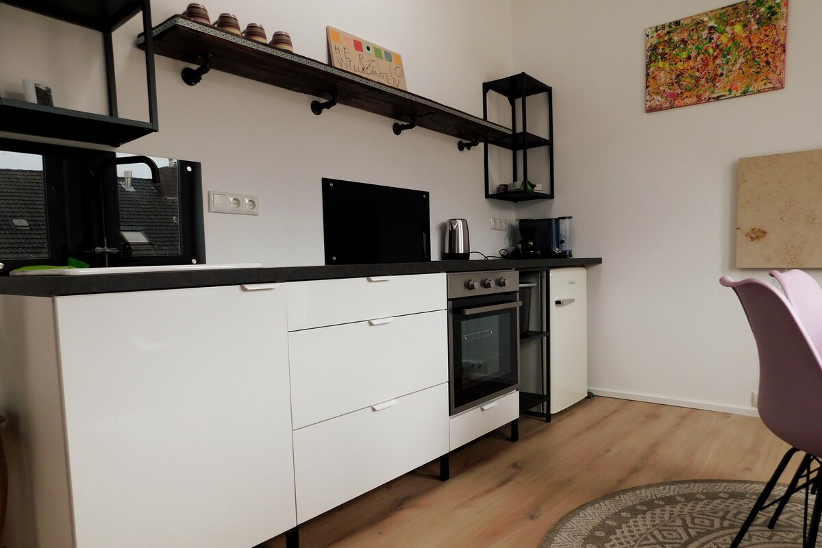 Wir vermieten gelegentlich unser Appartement mit ca. 30 qm Wohnfläche. Es ist zentral, aber ruhig gelegen in einem wunderschönem Altbau Dachgeschoss (3. Etage) im lebendigen Szene-Stadtteil Köln Kalk. Ihr findet einen kleinen und ruhigen Rückzugsort, seid aber in kürzester Zeit in allen Kölner Toplocations, wie der Lanxess- Arena (10 Minuten), der Messe (10 Minuten), dem Dom (15 Minuten), der Altstadt (15 Minuten), aber auch am Flughafen (20 Minuten) oder auf der Autobahn (5 Minuten).