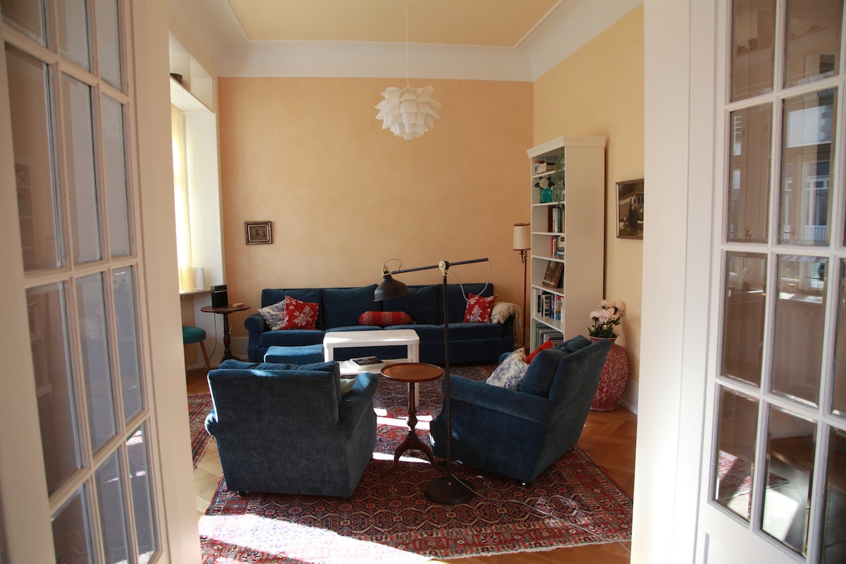 Our house is located at a hill in a real quiet residential neighbourhood. The modernized non-smoking apartment has got two bedrooms with king-size beds, a living room with a daybed, a completely redecorated bathroom and a new kitchen-cum-living room. Our guests are invited to use the big garden - garden furniture, a parasol and a Weber-Grill is available. We reserved a parking slot directly in front of our house especially for our guests.