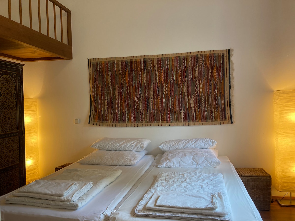 Welkom in het hartje Berlijn. Het gerenoveerde appartement is gelegen in het populaire Kreuzkölln, direct naast de Maybachufer. Cafés, restaurants en bars in de Wrangelkiez liggen op slechts enkele minuten afstand en in het aangrenzende park kun je een ontspannen pauze nemen van het dagelijks leven. Door de uitstekende ligging zijn de bus en U Bhf Schönleinstr. of Kottbusser Tor op loopafstand in 3 minuten en is er openbare parkeergelegenheid voor het huis en aan het Landwehrkanaal.