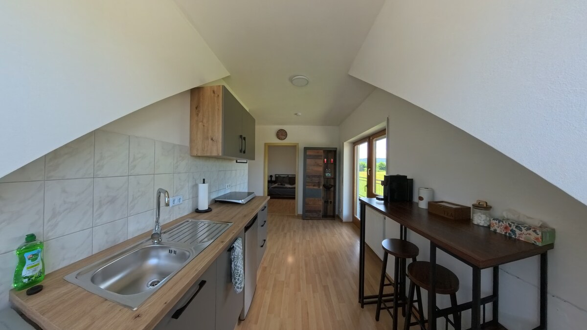 Deze rustige accommodatie met uitzicht op het bos biedt een rustige en relatief geluiddichte kamer. Gratis wifi in alle ruimtes. Dit appartement heeft 1 slaapkamer, een flatscreen-tv met satellietzenders + PS4. De keuken is volledig uitgerust, inclusief een koelkast, oven, wasmachine, magnetron, vaatwasser en fornuis. Het appartement biedt kortetermijnaccommodatie voor zakenreizigers, stelletjes of gezinnen op excursies.