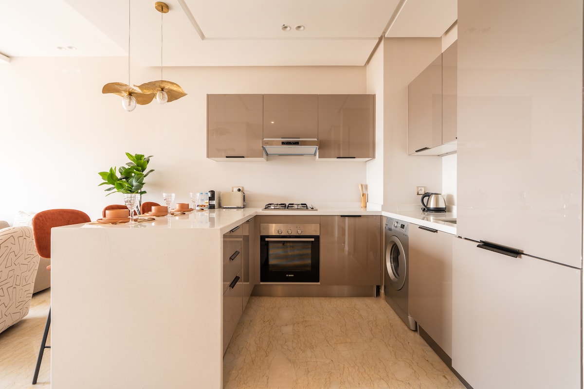 Verblijf in dit ruime en smaakvol ingerichte appartement met 2 slaapkamers, gelegen in de residentie Anfa Place in Casablanca, op slechts 1 minuut lopen van het strand. De accommodatie is licht en comfortabel en biedt ruime woonruimtes, een volledig uitgeruste keuken en een aangenaam balkon met uitzicht op de tuinen – perfect om te ontspannen in een rustige omgeving. Toplocatie in het centrum, in een gewilde buurt, met veilige privéparkeerplaats inbegrepen.