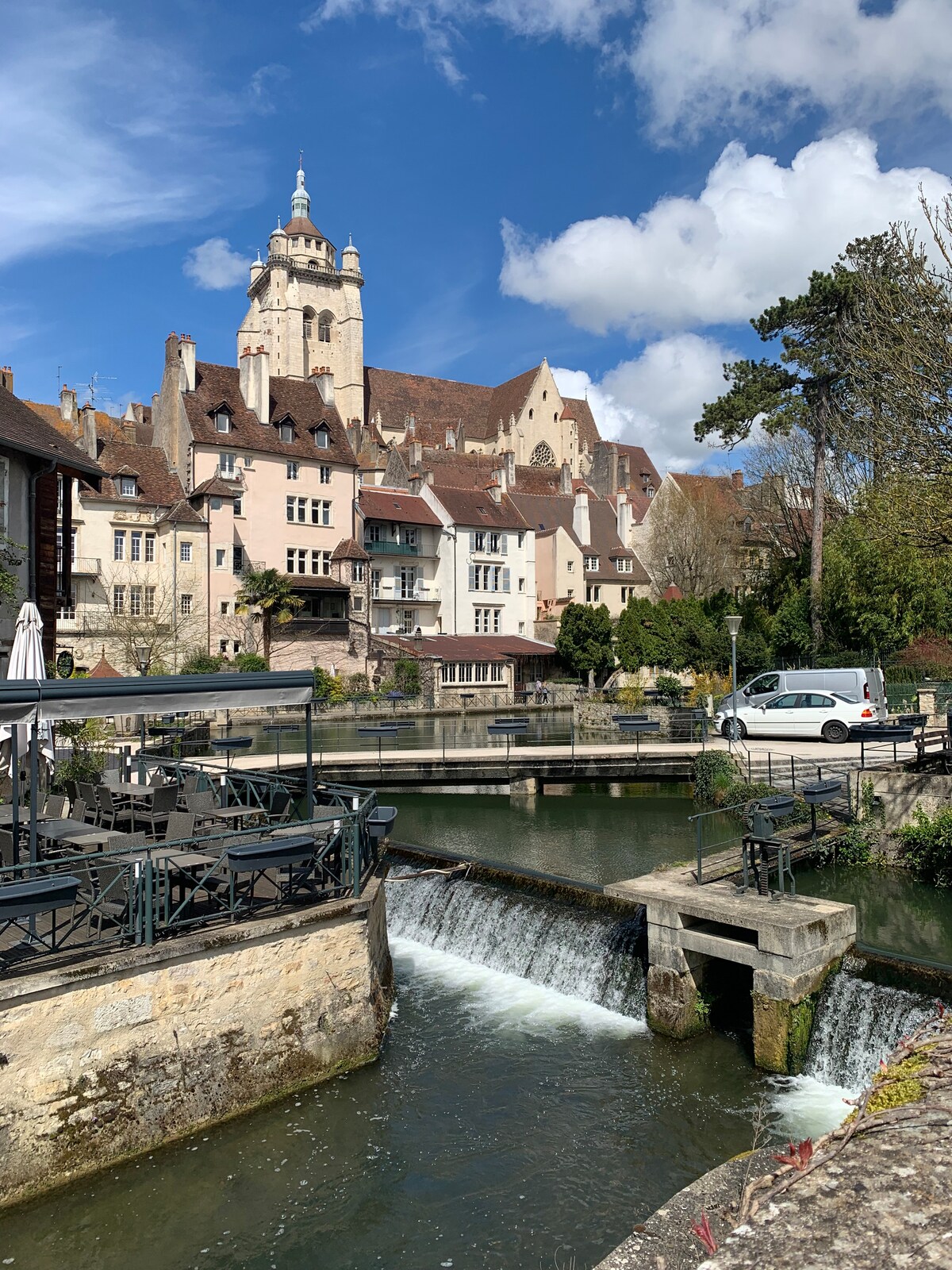 Groot appartement in de eetkeuken 'hart van de stad' en lichte woonkamer met kingsize bed. Klein terras op de binnenplaats. Charme van het oude. Gelegen op 2 stappen van het kleine Jura Venetië, de collegiale kerk van Dole, de historische wijk, de markt en de racefiets, Commanderie-toegang te voet . Treinstation 10 min te voet . De woning is veilig om fietsen te stallen. Veel winkels en restaurants op straat die rustig voetgangers zijn en gratis parkeren in de buurt .
