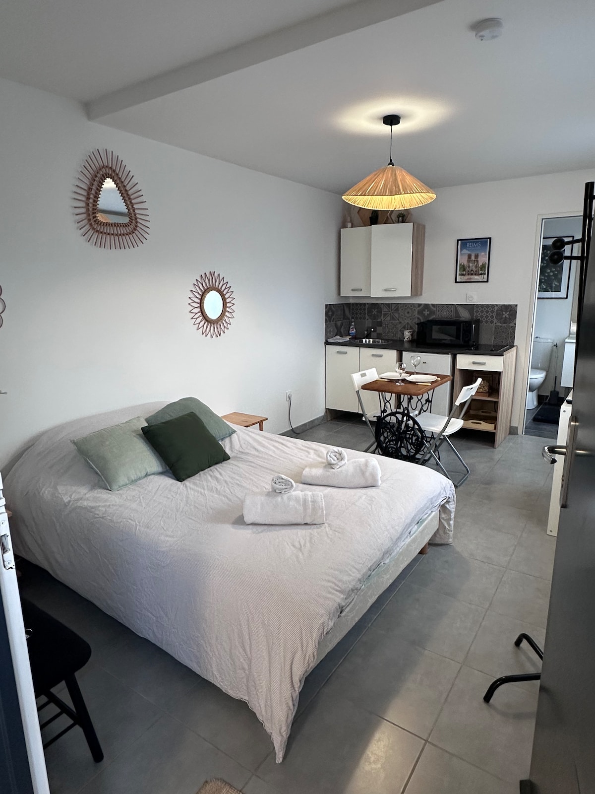 Welkom in ons warme en ruime appartement van 37 m ², ideaal gelegen voor een comfortabel en stijlvol verblijf. Perfect voor koppels, zakelijke reizigers of een klein gezin, dit appartement heeft alles wat je nodig hebt voor een onvergetelijk verblijf. Grote comfortabele bank die ook kan worden gebruikt als een extra bed indien nodig. - Uitgeruste keuken - Een bed van 160 x 200 - Douche, toilet en alle benodigde voorzieningen. - Een parkeerplaats