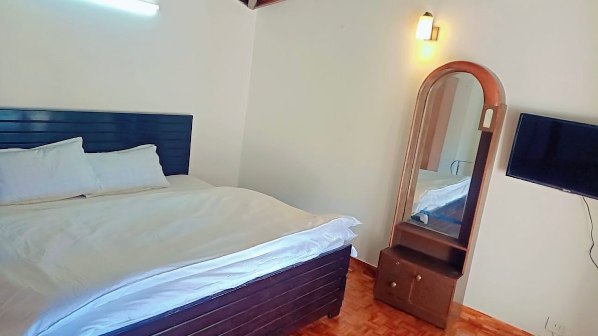 Dit prachtige huis is gelegen aan Airforce road 3 Mod Bhowali Nainital. Het is omgeven door dennenbossen. Aan de ene kant is Nainital, dat is 12 km. aan de andere kant ligt Bhimtal, Sattal op ongeveer 12 km. Het winkelcentrum is gewoon een aprx. 1,5 km 1 slaapkamer verdieping in een villagebouw met 1 slaapkamer en 1 grote eetzaal die comfortabel is voor 2 volwassenen en 2 kinderen jonger dan 15 jaar, Modulaire keuken is uitgerust met automatische kookplaat, vaatwasser, grote koelkast, schoorsteen kookgerei, geisers in de badkamer.