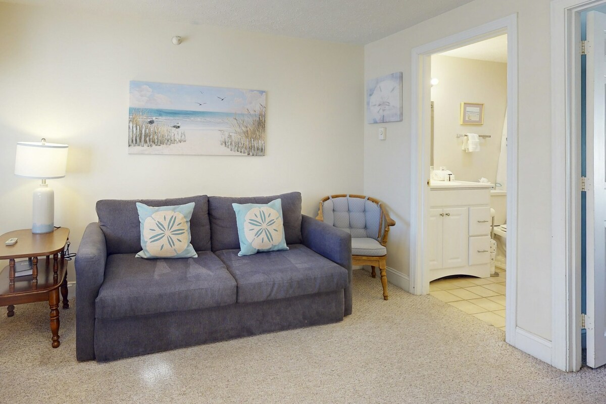 Geniet het hele jaar door van een aantal van de beste bestemmingen in de omgeving van Portland. Dit zonnige appartement op de begane grond met 1 slaapkamer in Cape Elizabeth heeft seizoensgebonden uitzicht op het water en ligt tussen Kettle Cove, Crescent Beach en Two Lights State Parks. Velden, bossen en vijvers liggen op een steenworp afstand, terwijl het centrum van Portland op 15 minuten rijden ligt. Het appartement is een geweldige uitvalsbasis om Zuid-Maine te verkennen en een even geweldige locatie om te ontspannen en te genieten van het herstellende water en de lucht van de kust van Maine.