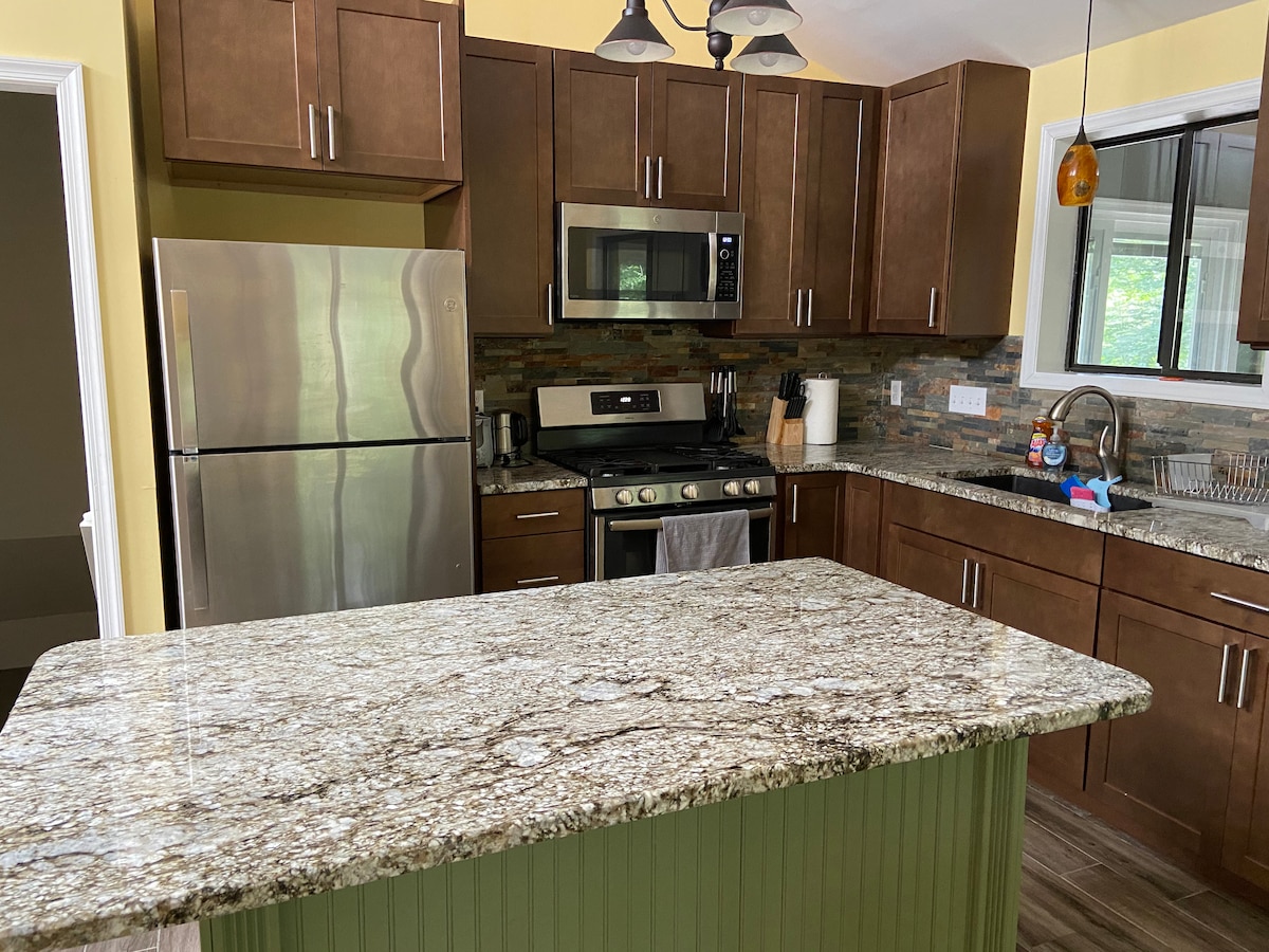 Een prachtig chalet ideaal gelegen in het Pocono-gebergte. Je bestemming voor een weekendje weg of een langer verblijf het hele jaar door! Buiten kan men genieten van een natuurlijke omgeving in een prachtige privé bosrijke woning van 1 hectare, een bubbelbad, twee vuurkorven, een terras voor ochtendkoffie of een heerlijke barbecue. Ons huis biedt een rustige binnensfeer en de woning is gunstig gelegen in de buurt van alle seizoensgebonden activiteiten van het Pocono-gebergte. Of je nu wilt ontspannen of opladen, ons huis biedt de perfecte retraite.