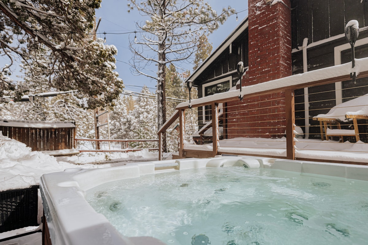 Ontsnap naar onze onlangs gerenoveerde 1936 Cozy Cabin. Op loopafstand van Bear Mountain, Alpine Zoo, Bristlecone wandelpad, 1,1 mijl naar Snow Summit, 2,9 mijl naar het dorp voor geweldige winkels en meer! Geniet na je geweldige avonturen van onze vuurplaats in de buitenlucht en neem een duik in de hot tub onder de sterren. Onze hut zit op een groot omheind terrein van 5 km. Houten huisje is inclusief: centrale verwarming, airco, 5G Wifi, smart-tv, Super Nintendo, dvd-speler, nieuwe apparaten, propaan BBQ, nieuw matras voor een heerlijke nachtrust.