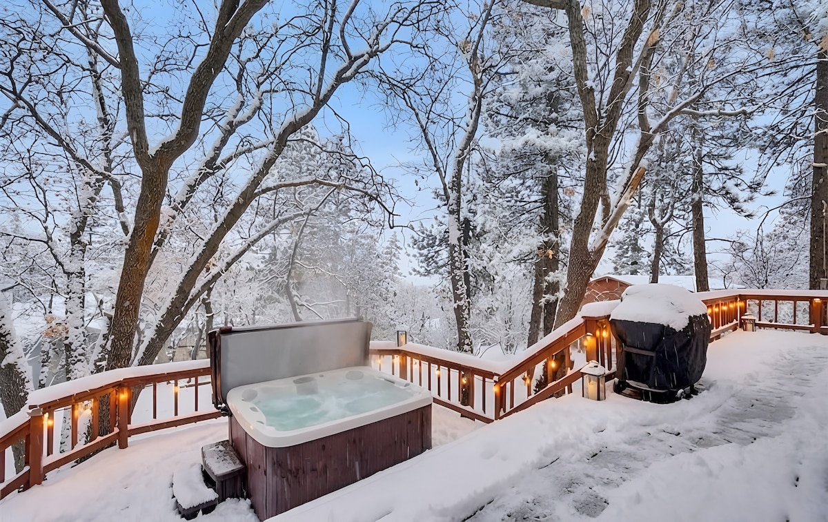 Stappen naar Snow Summit! Stijlvolle smart-home hut met eigen hot tub, BBQ, massagestoel en open haard. 2BR/2BA geschikt voor 7 personen. Volledige keuken met vaatwasser, Keurig + molen. Snelle wifi voor streaming/werk, EV-opladen (neem je snoer mee) en eenvoudig zelf inchecken zonder sleutel. Loop naar liften, fietspark, cafés; minuten naar The Village, paden en het meer. Rustige straat, eigen parkeerplaats. Perfect voor gezinnen, stellen en vrienden die op zoek zijn naar een centrale Big Bear Lake-basis. Boek eerst tracks en hot-tub nachten! Geniet ervan