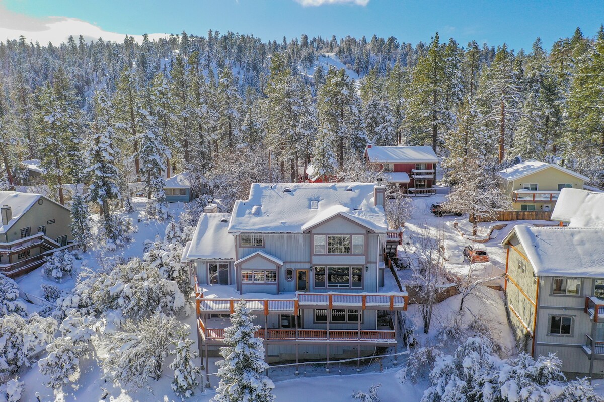 Ontsnap naar Big Bear's ultieme CABIN-retraite, waar luxe en comfort samenkomen in deze ruime, SCHONE en volledig uitgeruste hut. Dit prachtige uitje is perfect voor gezinnen, groepen en thuiswerkers en biedt alles wat je nodig hebt voor ontspanning, avontuur en entertainment. 🌲 Hoogtepunten: HOT TUB, PRIVÉDEKKEN MET VUURPLAATS, BBQ, 2 OPEN HAARDEN, SMART TV'S MET SONOS GELUIDSSYSTEEM, POOLTAFEL, BAR, MASSIEVE REDWOOD SLAB EETTAFEL, ROUGE GYM, PELOTON, MODDERKAMER, JACUZZI BADKUIP, PING PONG TAFEL