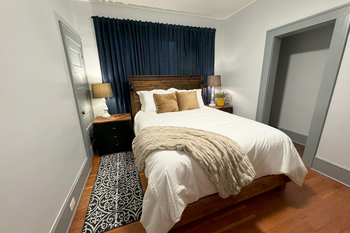 Welkom bij je stijlvolle DL duplexverhuur. Dit appartement met 1 slaapkamer biedt de perfecte mix van comfort en gemak in het centrum van DL. Of je hier nu bent voor werk, ontspanning of avontuur, deze accommodatie ligt op enkele minuten afstand van het centrum, meren, DL Mountain, Historic Holmes Theater, Thomas Dambo Trolls, We Fest en State Parks. Geniet binnen van een gezellige woonkamer met een smart-tv, een volledig uitgeruste keuken, een eigen ingang, patio met vuurtafel en een comfortabel queensize bed voor een goede nachtrust.