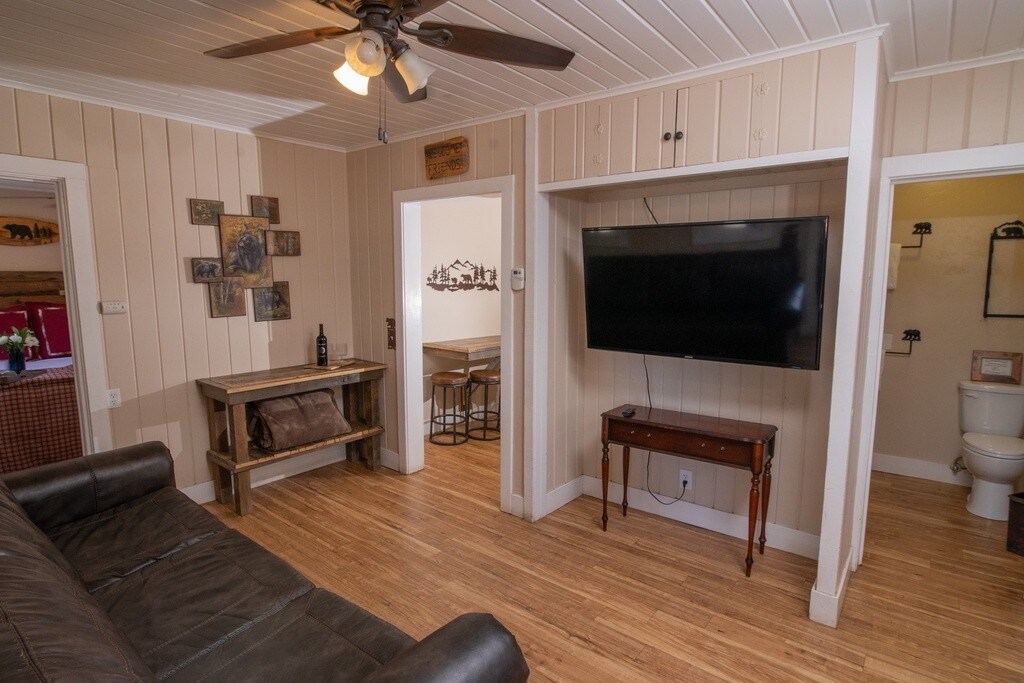 Gelegen in het hart van het Shaver Lake "Village", is schattige studio apt perfect voor een stel om te gebruiken als uitvalsbasis voor het verkennen van het mnt-gebied, en op loopafstand van alle restaurants en winkels. Het appartement is opnieuw gerenoveerd met keukentje en badkamer. Slaap lekker op de Stearns en Foster Cal King matras. Ook aanwezig, tv met Amazon Firestick en airco voor je entertainment en comfort. Het dek is privé en perfect om buiten te dineren. Gelieve geen huisdieren