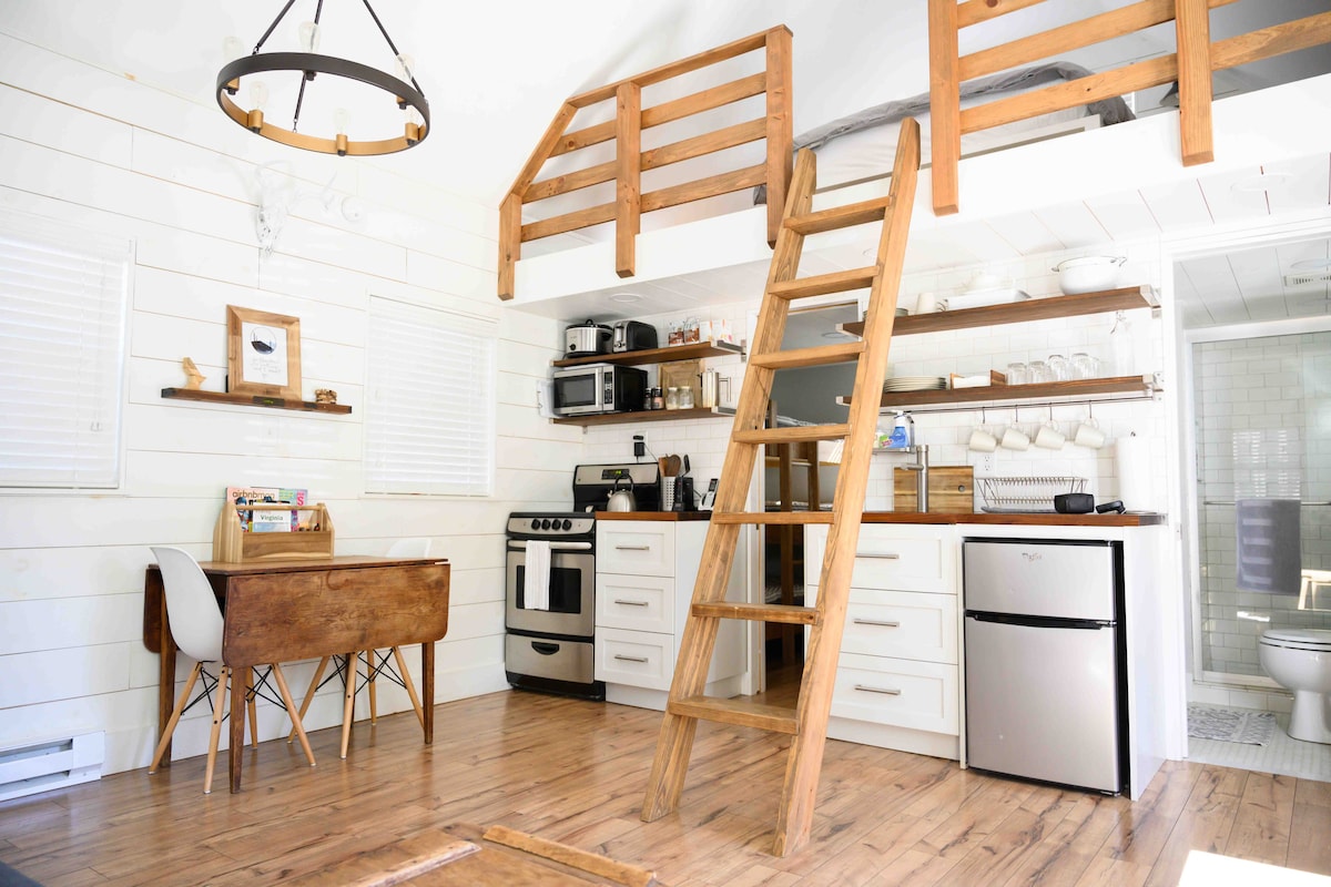 Heb je je weleens afgevraagd hoe het zou voelen om in een tiny house te wonen? Onze moderne studio is slechts 270 vierkante meter, maar heeft alle gemeenschappelijke voorzieningen in veel grotere huizen. Ervaar de 'Tiny House Movement' voor jezelf in onze kleine studio met NYC-thema. - Slechts 2 mijl van Liberty University (LU) en 5 mijl van University of Lynchburg (LC) - 4K-tv met Netflix, Sling en Blu-ray - Queensize bed - slaapbank voor twee personen - kitchenette - luxe douche - wasmachine/droger - 45' van hoofdwoning