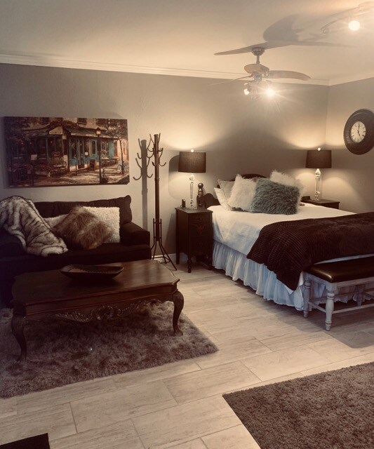 Ruim appartement met 1 slaapkamer en 1 badkamer met open indeling voor keuken/eetkamer/woonkamer. Onze unit is onlangs gerenoveerd en biedt gratis wifi. Nieuwe apparaten en magnetron, schoon beddengoed en handdoeken, evenals extra's in de kast met strijkijzer/strijkplank. Slaapkamer heeft queensize bed, bureau en elke kamer heeft Amazon Fire smart-tv met afstandsbediening om toegang te krijgen tot meerdere streaming-apps. Een kleine patio is gelegen buiten de woonkamer waar de parkeerplaats duidelijk zichtbaar is om je voertuig te zien. Wasserette op korte loopafstand.