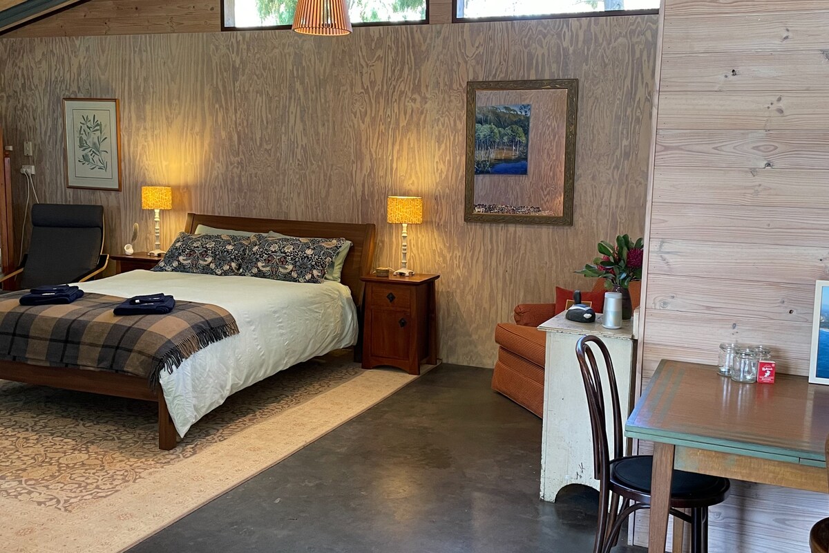 Maak opnieuw verbinding met de natuur. Dit unieke tiny house-verblijf gaat terug naar het staatsbos en geeft je het beste van twee werelden. De kleine dingen zijn gelegen op 3 hectare met uitzicht op een eendengestookte dam, kangoeroes en inheemse vogels, op slechts een steenworp afstand van de stad en lokale stranden. We zijn VOLLEDIG UITGESCHAKELD en MILIEUVRIENDELIJK ❤️ Gratis ontbijtmand genoten op de veranda, filmprojector voor regenachtige dagen en vuurkuipbad onder de sterren 's nachts 7 Velux dakramen en kingsize bed….. geniet van DE KLEINE DINGEN