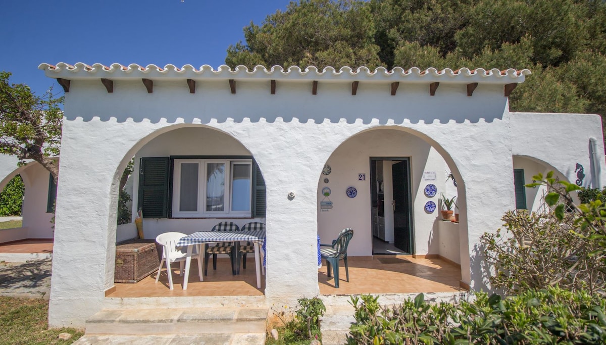 Gekoppeld huis gelegen voor Es Caló Blanc (30 m) in de urbanisatie Playa Binisafúller (250 m) in een rustige en familietuin die Minorcaanse lucht ademt met zwembad en gemeenschappelijke tuin, direct naast Camí de Cavalls. Het appartement met een groot privéterras lopen naar het zwembad ideaal voor lunch of zomerse diners. Met een volledig uitgeruste keuken in de ruime eetkamer is het ideaal voor 4 personen omdat het bestaat uit een tweepersoonskamer en een comfortabele slaapbank.