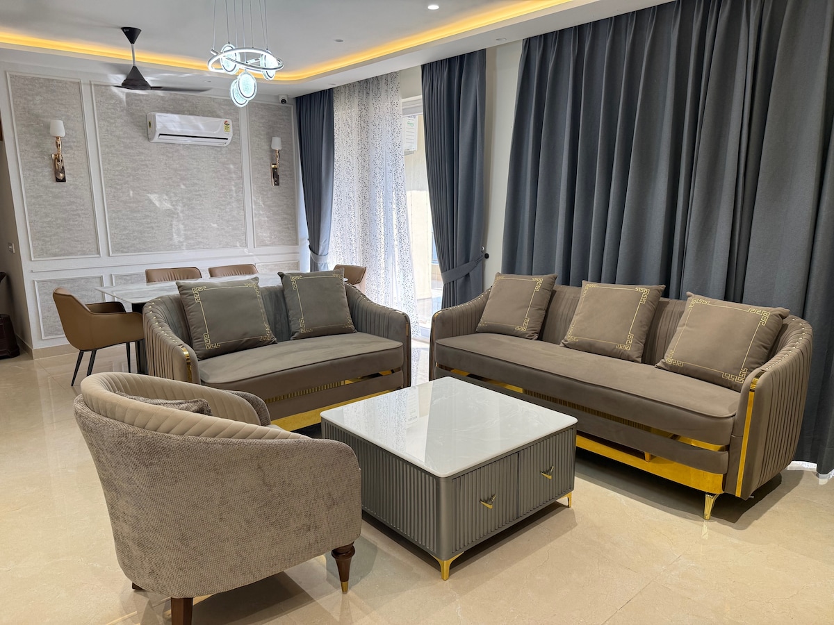Modern 3BHK • Spacious Living Room • 3 Comfortable Bedrooms • Fully Equipped Kitchen • Clean, Modern Bathrooms ⭐ THE AMENITIES Guests get access to Swimming pool, gym , theatre , games , salon and more amenities are there like table tennis , badminton, virtual golf , carrom , pool table , foosball , air hockey 🗺️ LOCATION Located near the Chandigarh–Delhi highway, the property is: • 10–15 mins from Chandigarh Airport • Close to malls • Wedding guests attending functions in Tri-city