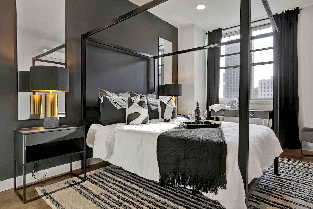 Maak kennis met uitzicht vanaf de 6. De Studio Penthouse Suite is een vleugje moderne en prachtige plattegrond. Het is voorzien van de nieuwste technologie Alexa Smart Home. Je kunt de LED-verlichting bedienen vanaf je stem en elke gewenste kleur veranderen. Voorzien van een keuken, wasmachine en droger hoef je niet te vertrekken! En niet vergeten de voorzieningen. Restaurants zijn in het gebouw! Parkeren is gratis, maar de hanger vereist een borg van $ 50. En het dak is een vibe! Neem een kijkje