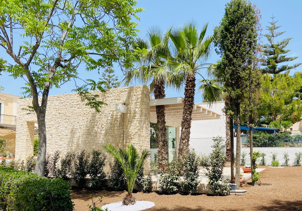 Nieuw gebouwde vakantievilla, onafhankelijk en onafhankelijk. De buitenruimtes van de villa: de grote en gemeubileerde veranda en de karakteristieke Apulische tuin, bieden momenten van rust en vrije tijd voor gezinnen. Het appartement is nieuw en licht, verfijnd in zijn eenvoud, ingericht met timmerwerkmeubilair en uitgerust met alles wat je nodig hebt voor een comfortabele vakantie. De ruime ruimtes, de vele gemakken inbegrepen en de ruime keuze aan voorzieningen maken het verblijf zorgeloos.