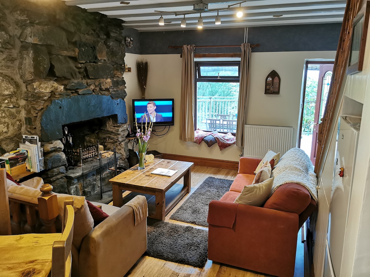 Ons dalhuisje is ideaal voor koppels. Een kleine maar perfect gevormde, 500 jaar oude woning, genesteld in de idyllische Nantmor-vallei in de buurt van Beddgelert, met wandelroutes voor alle niveaus direct vanaf de voordeur. We hebben een prachtig uitzicht om vanuit deze mooie woning door de glazen muur naar buiten te kijken en te genieten. De houtkachel is perfect voor die avonden waarop je gewoon samen wilt ontspannen en genieten van de rust en stilte.