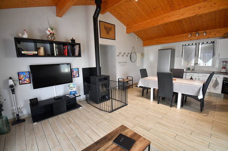 In een klein dorp, gelijkvloers huis bestaande uit 2 slaapkamers, badkamer, toilet, grote woonkamer met keuken en woonkamer, grote privétuin. Mogelijkheid om de auto in deze tuin te parkeren. Voorzieningen: vaatwasser, wasmachine, magnetron, tv, wifi,strijkijzer en strijkplank , zachte pod-machine en cafés. BBQ,tafel, buitenstoelen. Elektrische verwarming (of hout). Beddengoed en badlinnen voorzien . Veel bezienswaardigheden. Feesten en bijeenkomsten zijn verboden