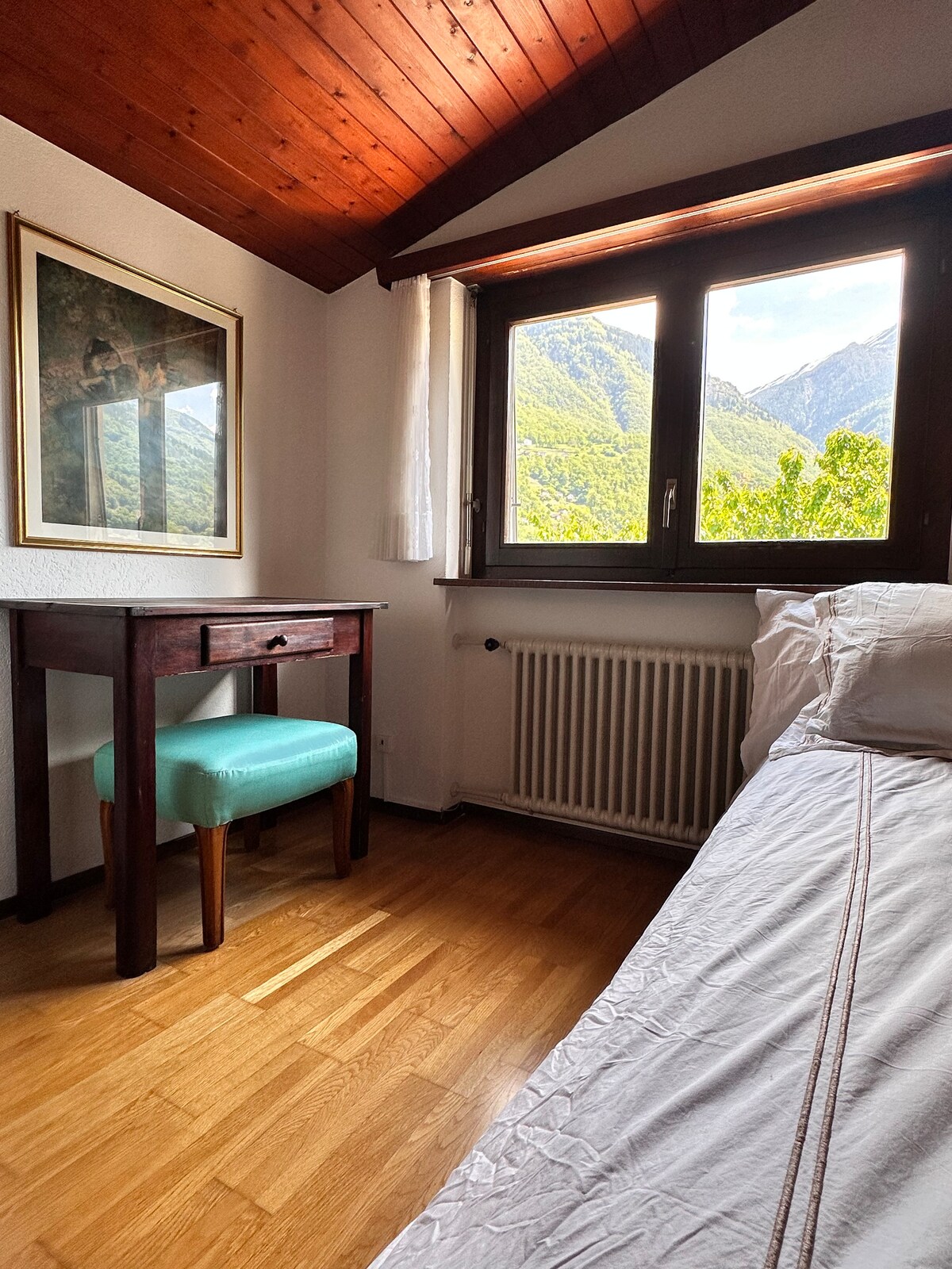 Rustico Natura e Serenità is: ✓ Een oase van rust in de natuur ✓ Sportschool/yoga/meditatie ✓ Een omgeving die erfgoed en moderniteit combineert ✓ Adembenemende uitzichten ✓ Een bos en een rivier als je enige buren Makkelijk ✓ bereikbaar met de auto ✓ Eigen werkplek ✓ Een open haard en een fornuis ✓ Een ruime, stijlvolle keuken ✓ 2 slaapkamers (6 personen) en 2 badkamers ✓ 2 ingerichte terrassen met uitzicht op de Alpen Uitgeruste ✓ wasruimte ✓ 5 min van skigebied Nara