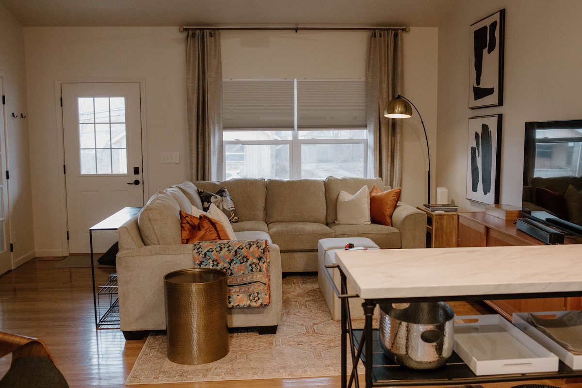 We zijn gunstig gelegen op loopafstand van Downtown, Bryan Park en The B-Line Trail, 1 mijl naar IU Campus, 1,8 mijl naar Assembly Hall en 3,5 mijl naar IU Hospital. Ons geliefde luxe appartement is een van de leukste plekken om te verblijven in de stad. Het onderging een op maat gemaakte renovatie met witte eiken hardhouten vloeren, kwarts aanrechtbladen en premium apparaten, met een premium suite in een boetiekhotel met de extra privacy, charme en voorzieningen van een huis voor een geweldige prijs.