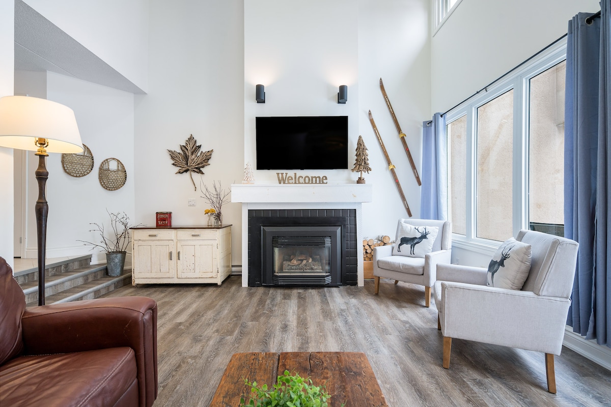 Dit prachtige privé herenhuis met 3 slaapkamers ligt in het gerenommeerde Wintergreen Resort. Het ligt op een steenworp afstand van de berg, op slechts vijf minuten lopen van het dorp en op korte loopafstand van het centrum van alles wat Blue Mountain te bieden heeft. Gasten zijn dol op dit herenhuis van 1600 vierkante meter vanwege zijn stijlvolle meubels, ongelooflijk uitzicht op de bergen, een eigen sauna, snel internet, spelcomputer, twee privédekken, een nieuwe gasbarbecue, drie grote smart-tv's met Netflix, nieuwe keuken, 2,5 badkamers en veel koffie en thee. Onze