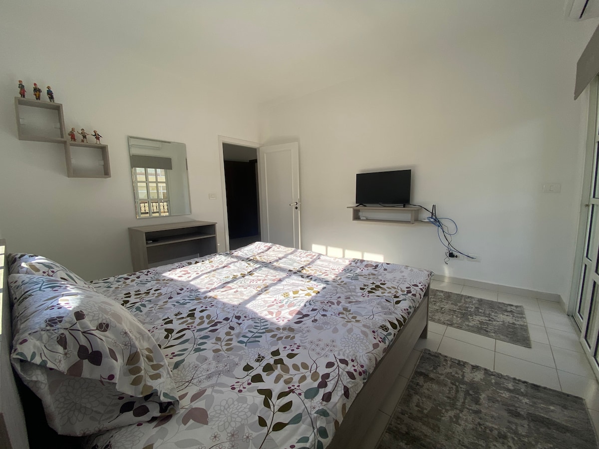 Gezellig & comfortabel, prachtige plek, groot en ruim. - 2 minuten met de auto naar het hart van Byblos. - 12 minuten met de auto naar Batroun. - 10 minuten lopen naar de Sea Boulevard - Ruim appartement / 120 m2 - De keuken is volledig uitgerust. - 2 slaapkamers - 1 master en 2 eenpersoonsbedden. - 2 toiletten. - 1 gratis parkeren. - Eettafel voor 6 personen. - Elektriciteit 24/7. - Airconditioning in slaapkamers - Airconditioning in de woonkamer (tegen een toeslag) Opmerking: de prijs voor 2 gasten = één slaapkamer, indien 2 gasten in 2 slaapkamers. Er komt $ 10 extra