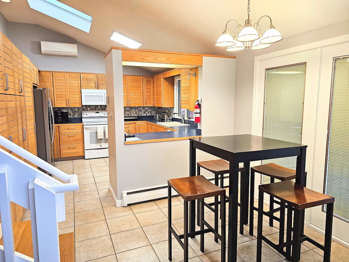 Hooting Haus, gelegen aan de rand van het bos en vernoemd naar onze inwonende uil, is een houten retraite in Europese stijl, dicht bij alles wat Penn State te bieden heeft. De gastronomische keuken heeft een rustieke charme met een zinken kookeiland, een slagersblokaanrecht en een natuurstenen wand. Ontvang gasten aan de ambachtelijk vervaardigde dennenhouten tafel terwijl jullie naast de antieke open haard dineren. Ontspan met een duik in de hottub en sluit de avond af met verhalen onder een inktzwarte hemel, verzameld rond de vuurplaats met een rustgevende hot toddy of een mok romige chocolademelk.