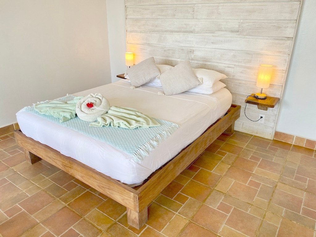 Heron is een lichte en luchtige kamer met uitzicht op de oceaan met een queensize bed, een grote betegelde badkamer met inloopdouche en schuifglas met de sprankelende Caribische Zee. Er is een zithoek met uitzicht op het water, een rek voor het ophangen van kleding en planken voor opslag. Een plafondventilator houdt het's nachts koel en er is altijd snel internet beschikbaar. Stap de voordeur uit en op het enorme gedeelde terras boven het Caribisch gebied. De bar, het zwembad en de yogashala liggen allemaal op slechts een paar stappen afstand.