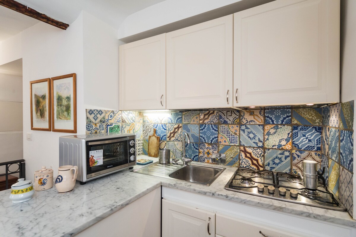 Geheel appartement op steenworp afstand van de zee in een van de meest exclusieve hoeken van Genua. Het appartement is gelegen in Cape Santachiara tussen twee oude vissersdorpjes, Vernazzola en Boccadasse. De oprit is alleen voor voetgangers. Ongeveer 80 meter te voet om het appartement te bereiken vanaf de oprit. Het is gelegen in een oude woning aan zee, gerenoveerd met verfijning. Oude zeilboten steken het plafond over en oude tegels versieren het keukengerei.