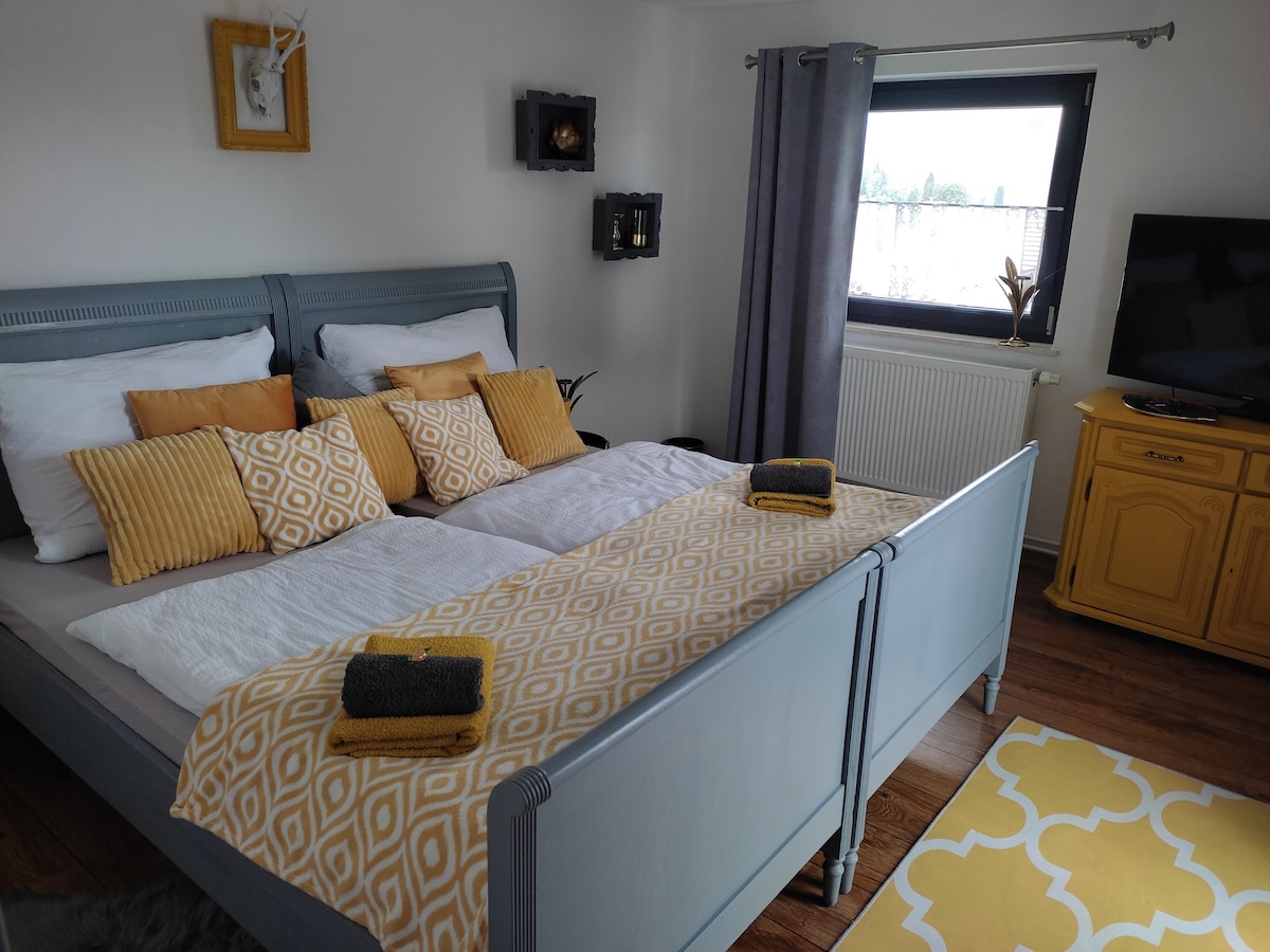 Zeer licht, nieuw appartement met twee kamers en directe toegang tot het ruime tuinterras met WEBER gasgrill voor gratis gebruik en privégebruik. Uitzicht over de Flanitzbach op de glazen tuinen Frauenau. 5 min van het station. Keuken met de volgende voorzieningen: koelkast, fornuis, afwas, enz. Zweeds fornuis in de slaapkamer. Zeer rustige en idyllische locatie. Honing van je eigen bijen en vrij boswater. Eigen nieuwe badkamer met regenwouddouche en toilet. Wifi beschikbaar.