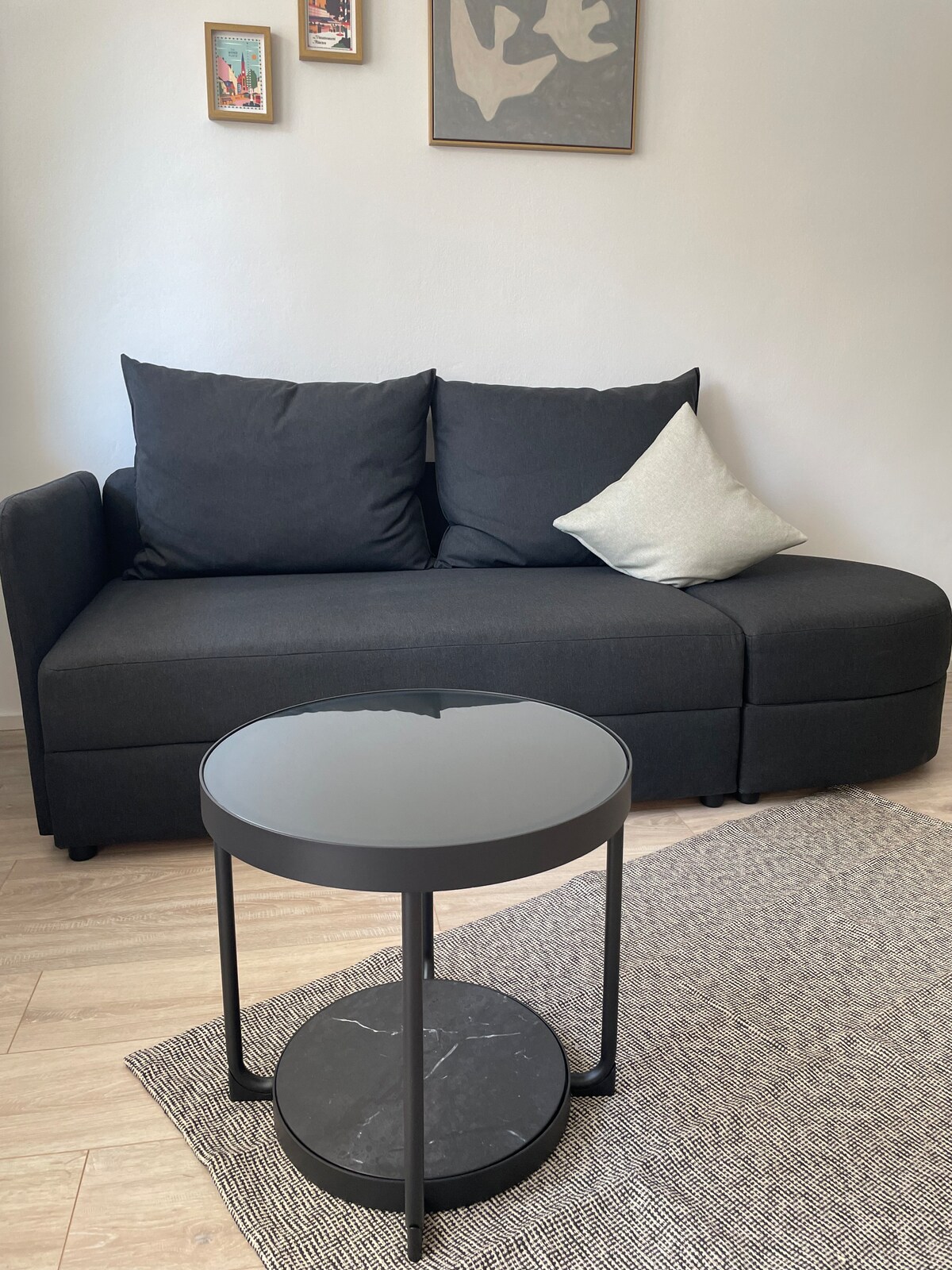 Klein appartement voor 3 personen. Een tweepersoonsbed en een slaapbank. Er is een groot balkon vanwaar je de zonsopgang kunt zien en het kijkt uit over de Alpen. Het ligt ook op 1 minuut lopen van het U-bahn-, bus- en tramstation (Westendstraße). Ook het S-Bahn-station is dichtbij.