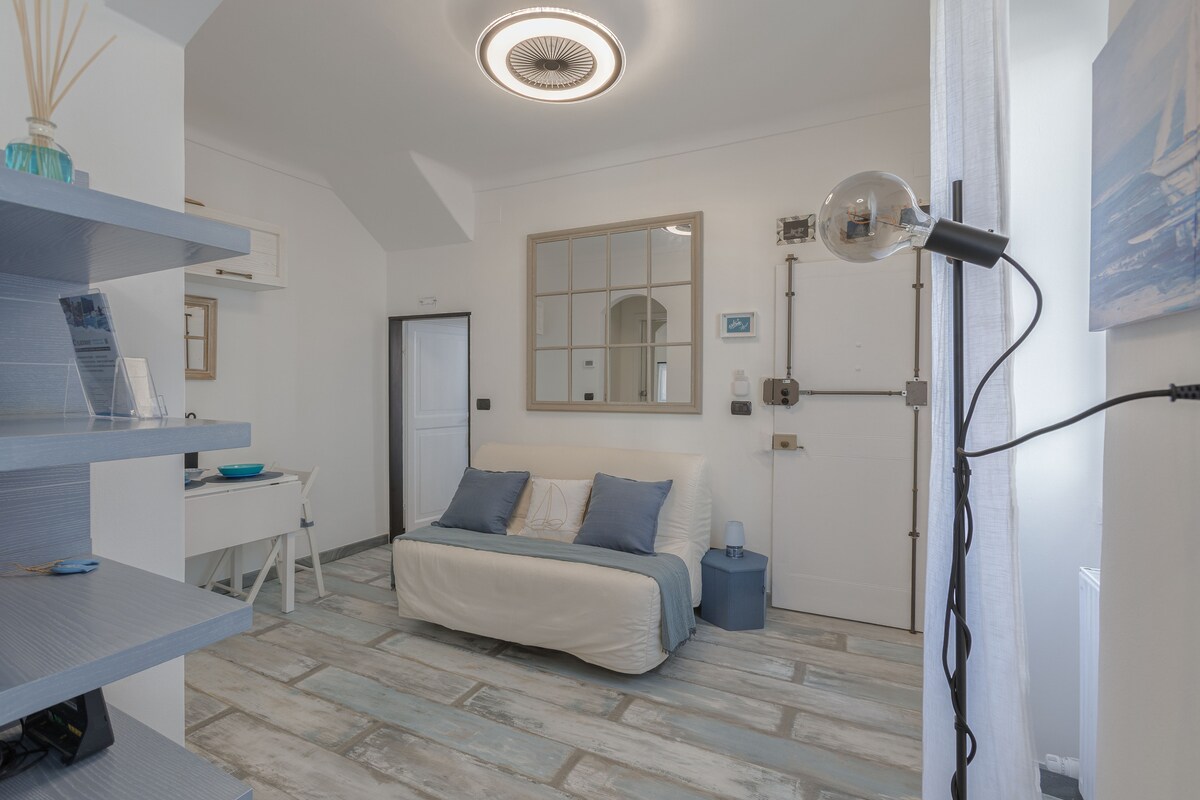 HET RAAM NAAR DE ZEE 50 vierkante meter open ruimte op het strand waar je kunt ontspannen met het geluid van de branding. Het is gelegen op de bovenste verdieping (derde), zonder lift en met een steile trap, van een van de kleurrijke vissershuizen. Er zijn ook interne trappen om de tussenverdieping van het tweepersoonsbed te bereiken. De inrichting is geïnspireerd op de wereld van boten, gemaakt van hout en staal, en is geschikt voor 2+2 personen (kinderen). Geschikt voor mensen met een Spartaanse geest.