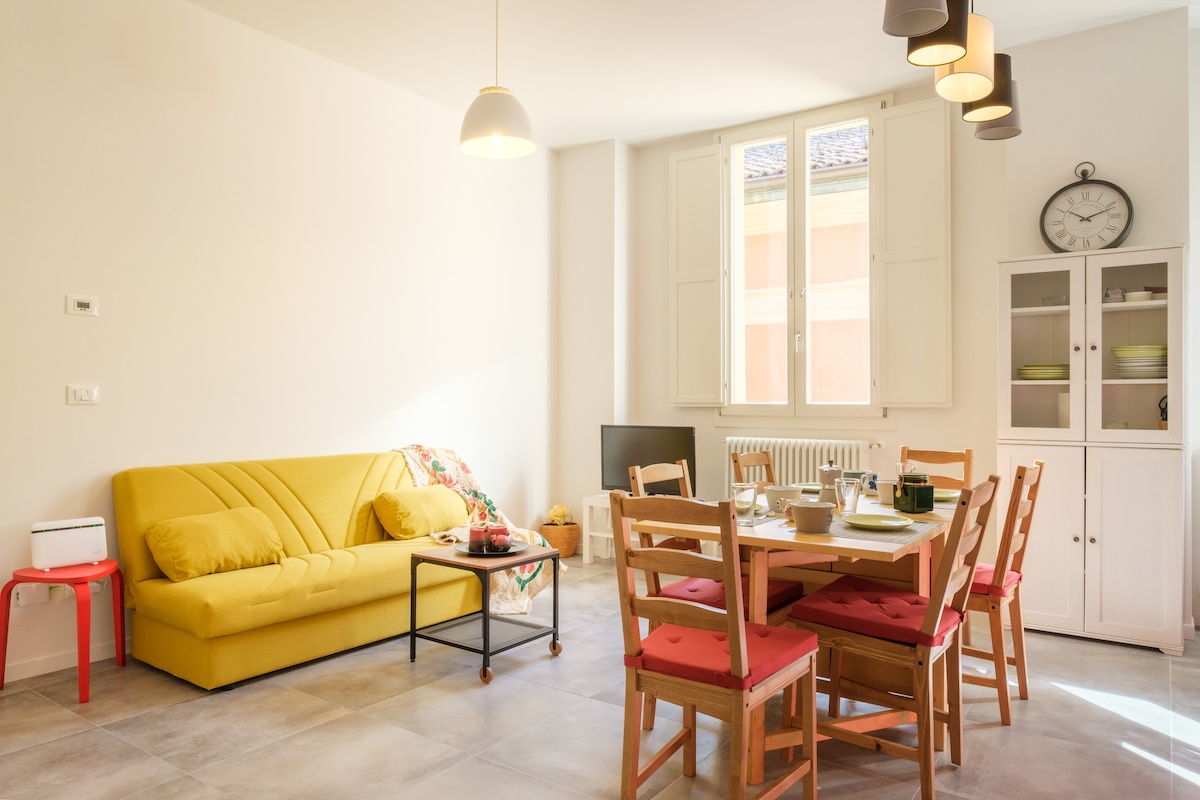 Het appartement op de binnenplaats is een grote balans tussen de nabijheid van alle artistieke, culturele en gastronomische attracties van de stad en de rust die wordt geboden door het uitzicht op een prachtige binnentuin. We zijn gevestigd in het centrum, op minder dan 10 minuten lopen van Piazza Maggiore, in een typisch gebouw van de '700 Bolognese. Het appartement bestaat uit een entree, badkamer, woonkamer, woonkamer met tweepersoonsslaapbank en televisie en slaapkamer met een eenpersoonsbed en een half bed.