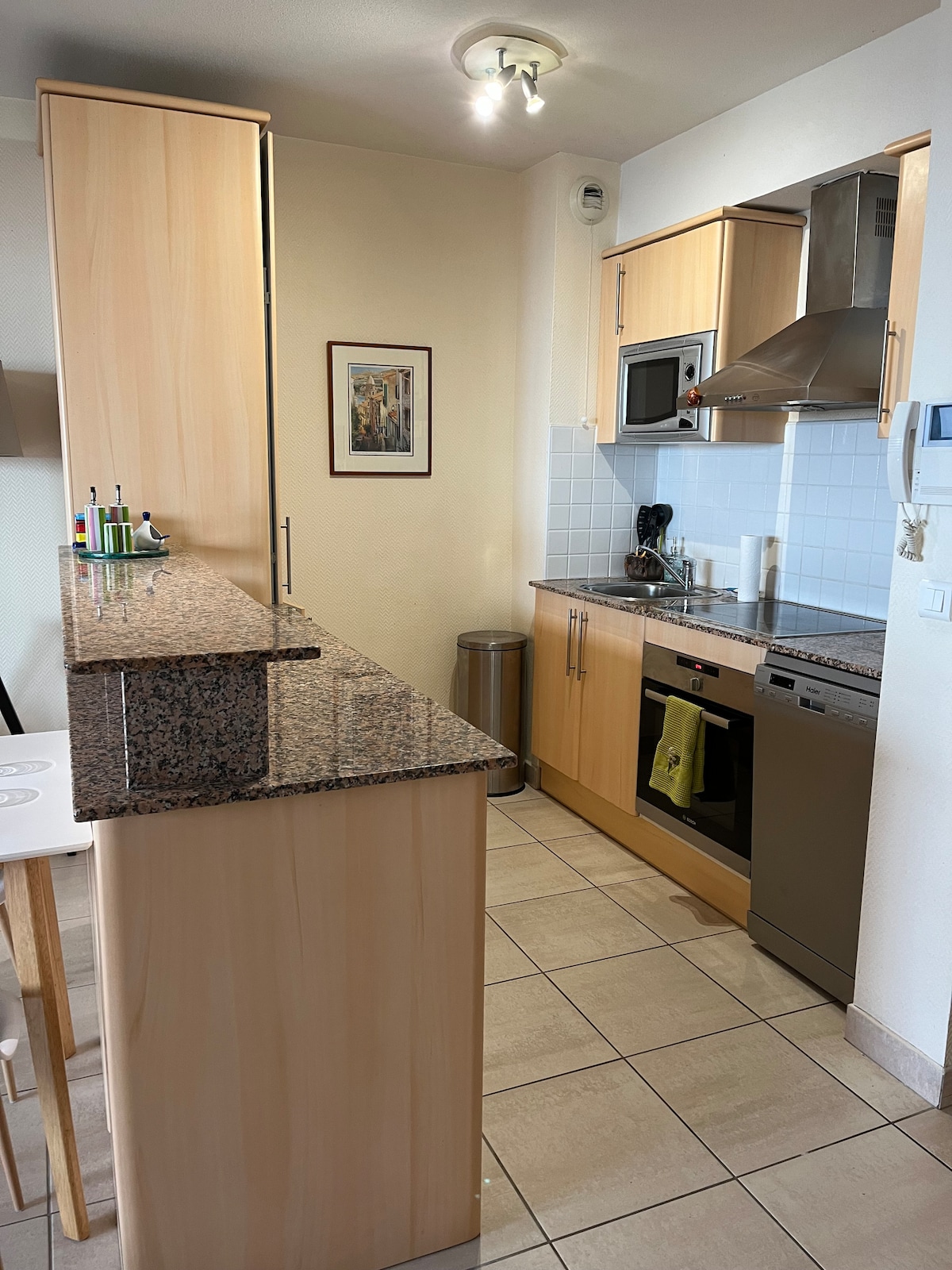 gerenoveerde accommodatie gelegen op de 5e verdieping(38m2 +10m2 terras)- 2 liften - eigen parkeerplaats op het terrein (hoogte 1m90maxi)- alle comfort - Panoramisch uitzicht op zee vanaf het overdekte terras - Geen uitzicht op de overdekte terras - Directe strandtoegang - 1 slaapkamer tweepersoonsbed 140 - 1 slaapbank 140 - airconditioning - nieuw uitgeruste keuken 4 inductie open haard, roterende warmteoven - magnetron - vaatwasser, wasmachine - smart-tv - beddengoed, handdoeken aanwezig, wifi glasvezel- wifi-