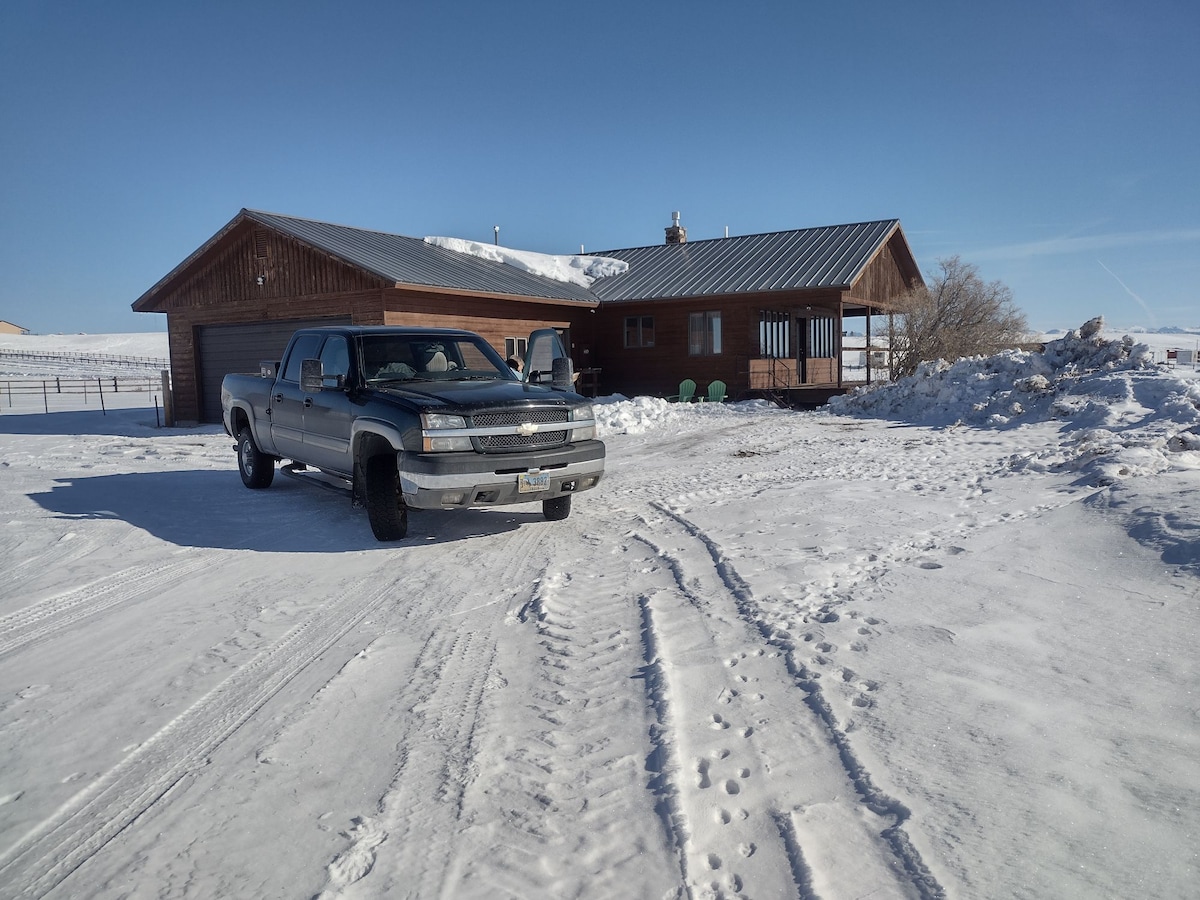 Take it easy at this unique and tranquil log cabin. Situated on a sheep and horse farm surrounded by grass fields yet minutes away from Grand Targhee resort, grand Teton national park and Yellowstone. You get the whole cabin which is fenced in on 2.5 acres of horse pasture and has a newly inclosed deck. Ask about boarding your horse during your stay. This is the perfect location to access all of the parks and recreation. Enjoy a spectacular sunset from this peaceful retreat.